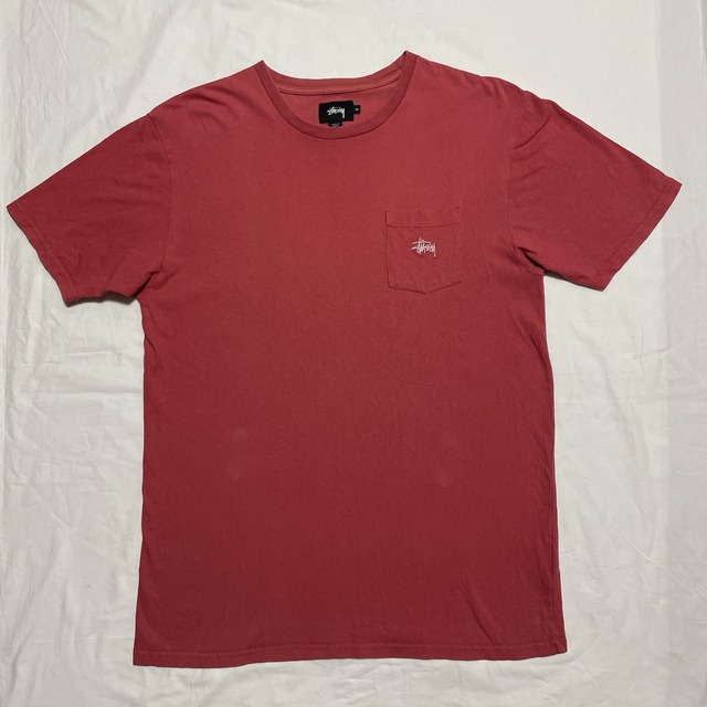 ステューシー、ストックロゴTシャツ。 胸元にワンポイントのストックロゴを配置したシンプルなポケットTシャツ。 カラーはレッド、ピンク系。 size:XL(肩幅53身幅55着丈79袖丈24) . condition:C . 素材:100%cotton . 状態詳細:写真のとおり若干の使用感あり イメージと違う、採寸が数センチ違う等々の返品は行っておりません。 神経質な方のご購入はご遠慮ください。 0013