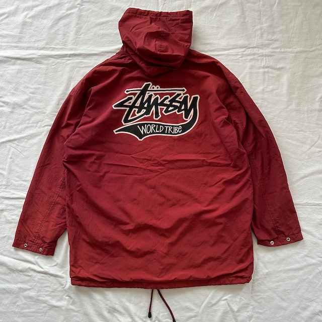 2000年代初期、00sステューシーの復刻ロングナイロンジャケット。カラーレッド。Mサイズですがゆったりめのサイジングで採られています。 バックにオールドステューシーで人気のステューシーワールドトライブのデザイン!ややフェードも含め雰囲気のあるアイテムになっています。 M(肩幅60身幅65着丈78袖丈56) . condition:B . 素材:- . 状態詳細:目立つ汚れダメージありませんがフロント左下にかけて色褪せフェードあります。 古着につき細かいダメージ・汚れ等ご了承下さい。 イメージと違う、採寸が数センチ違う、細かい汚れ等々の返品は行っておりません。 神経質な方のご購入はご遠慮ください。