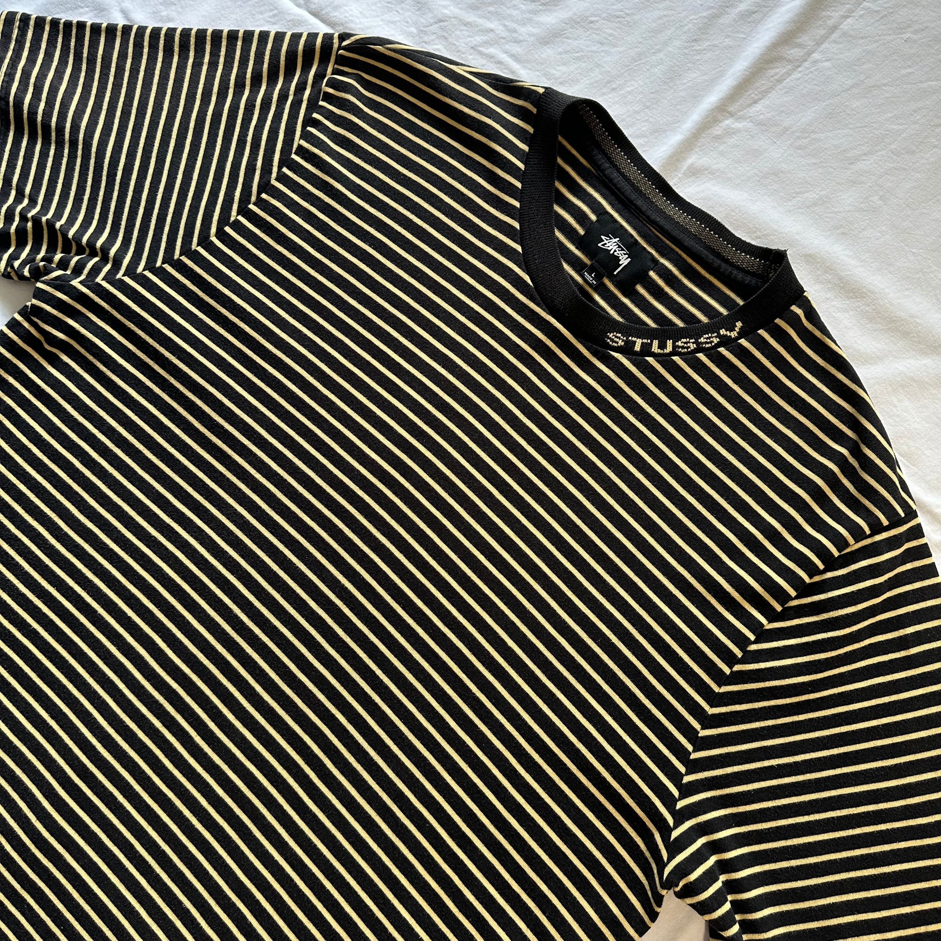 10s STUSSY BORDER TEE.BLACK/YELLOW.L