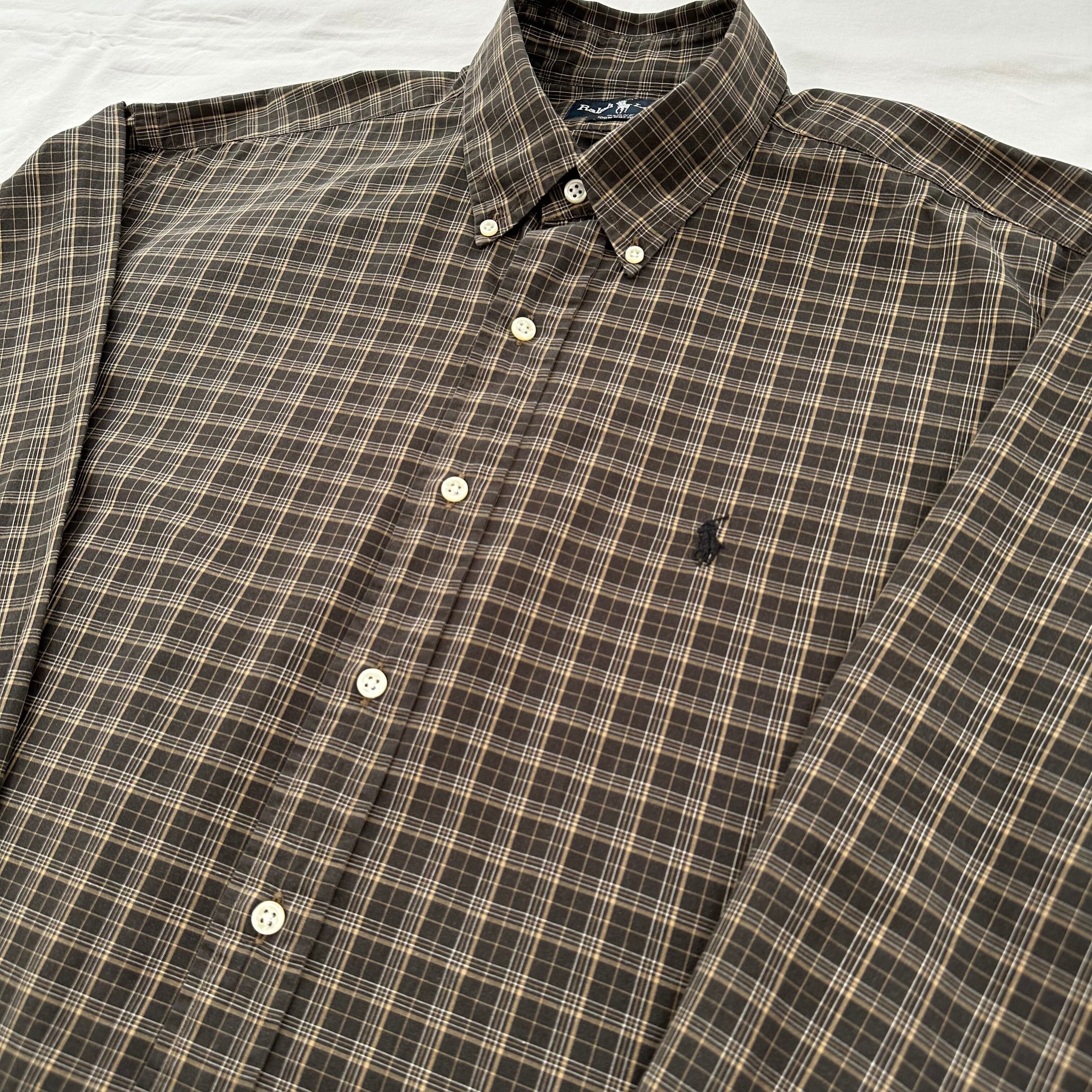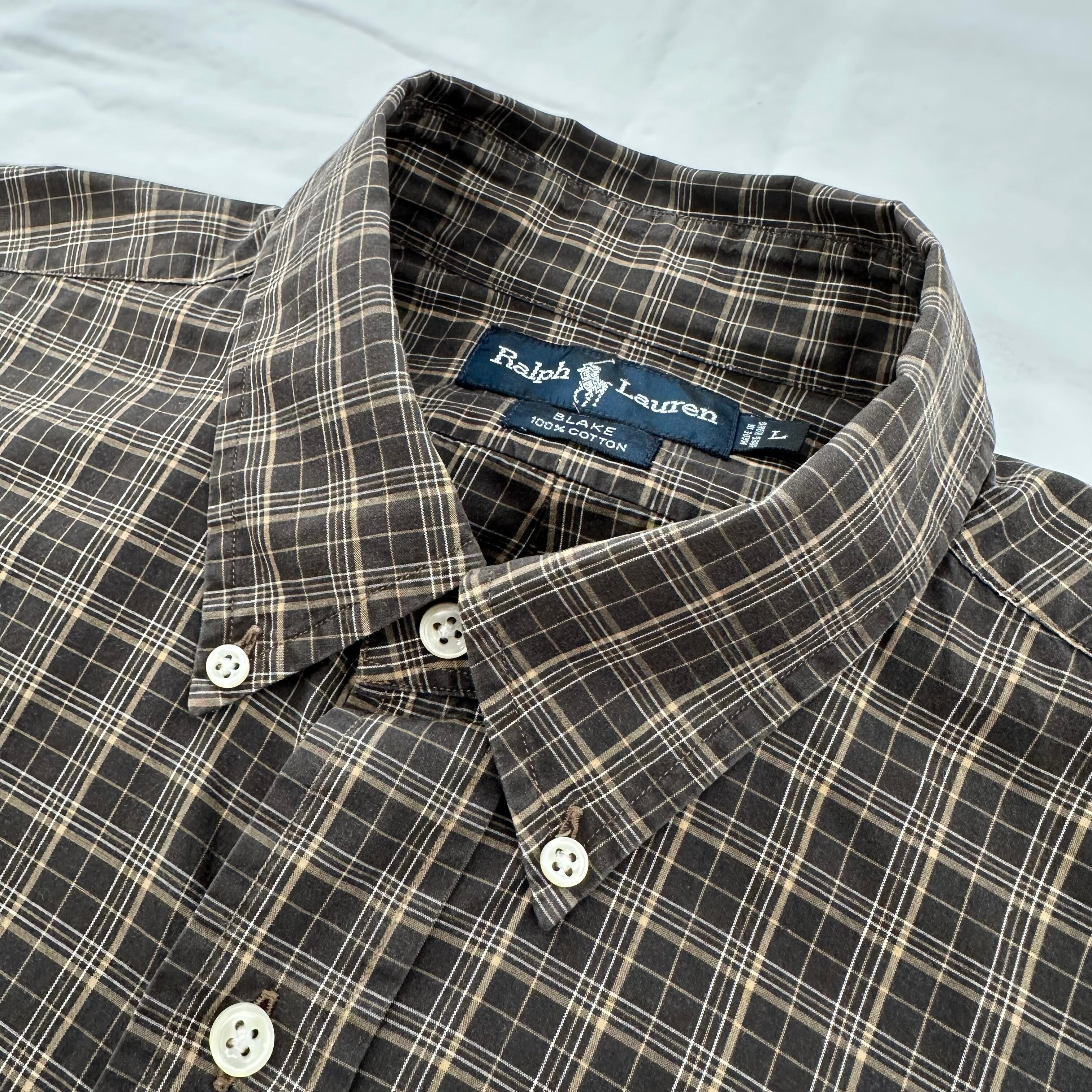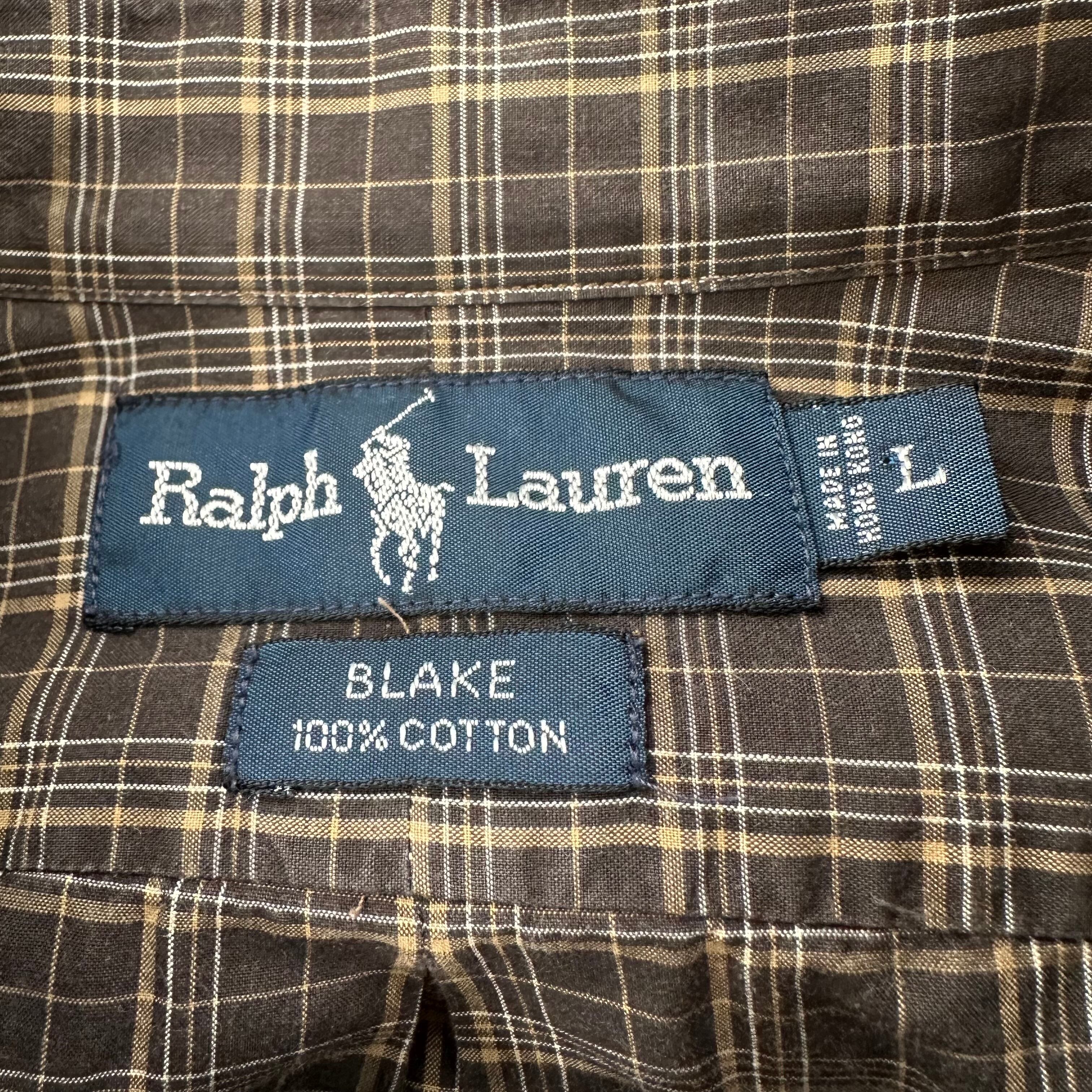 90s Ralph Lauren BLAKE ラルフローレン ブレイク ボタンダウンチェックシャツ.ブラウン.L
