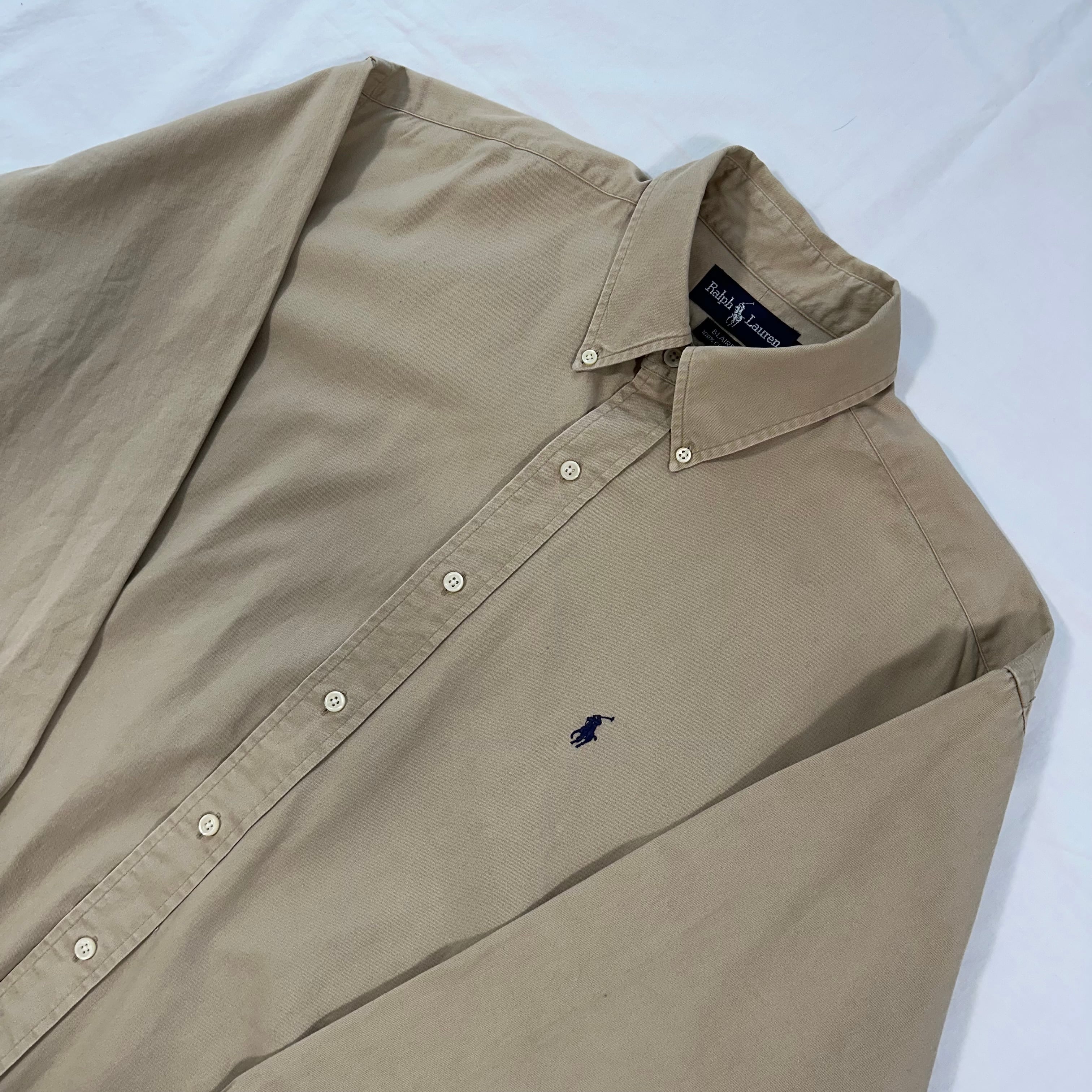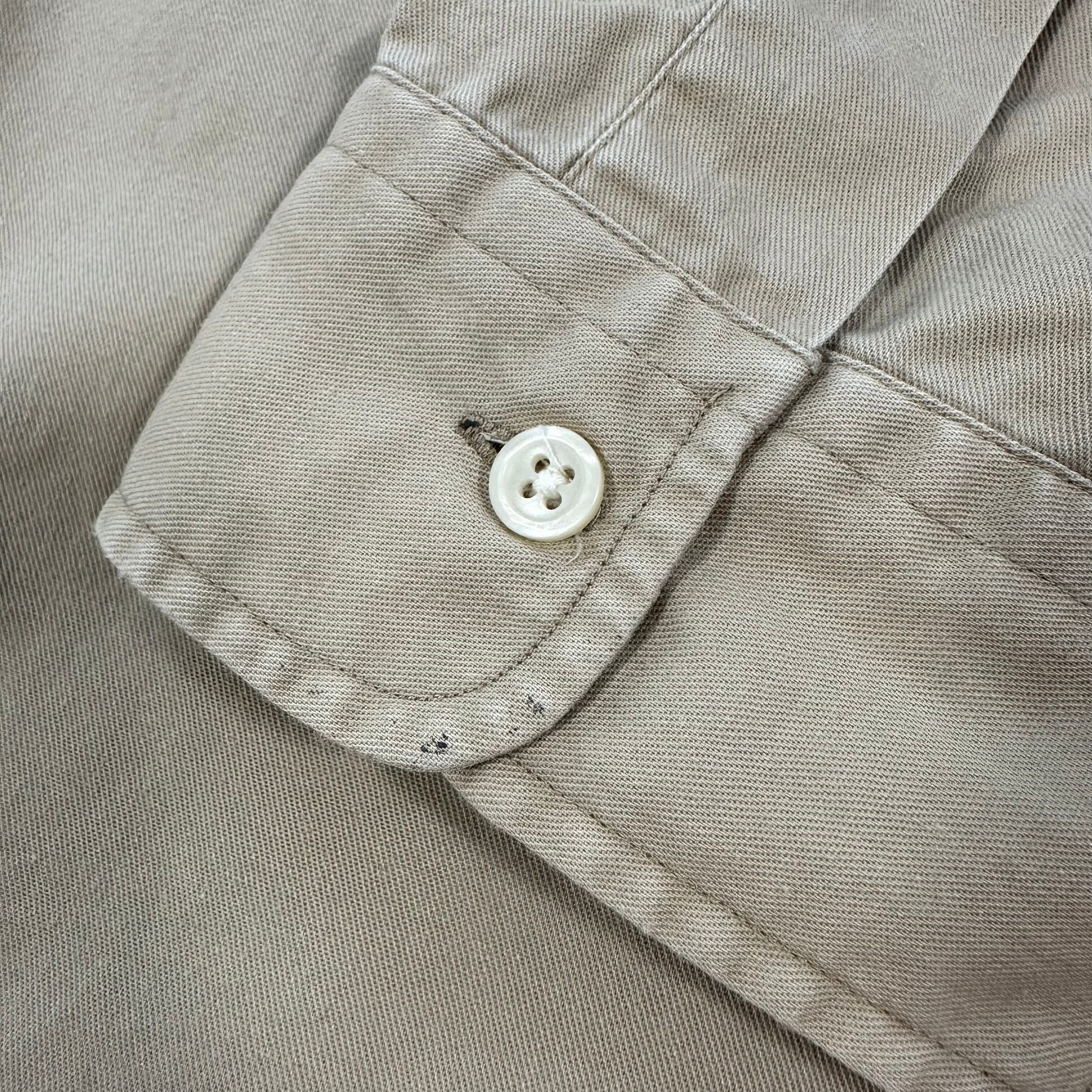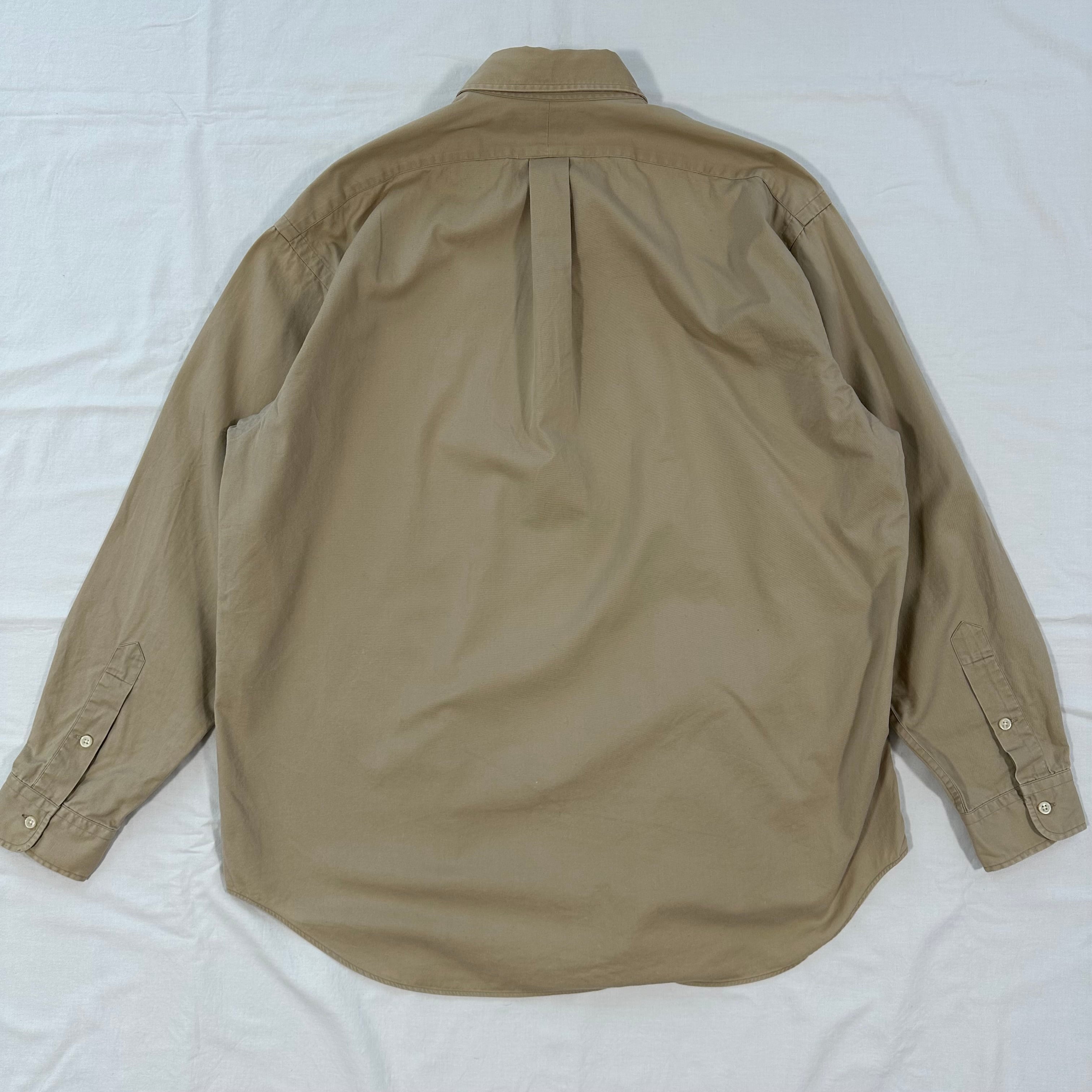 大きめのサイジングが特徴的な90年代のブレアの長袖シャツ。カーキ/ベージュ。