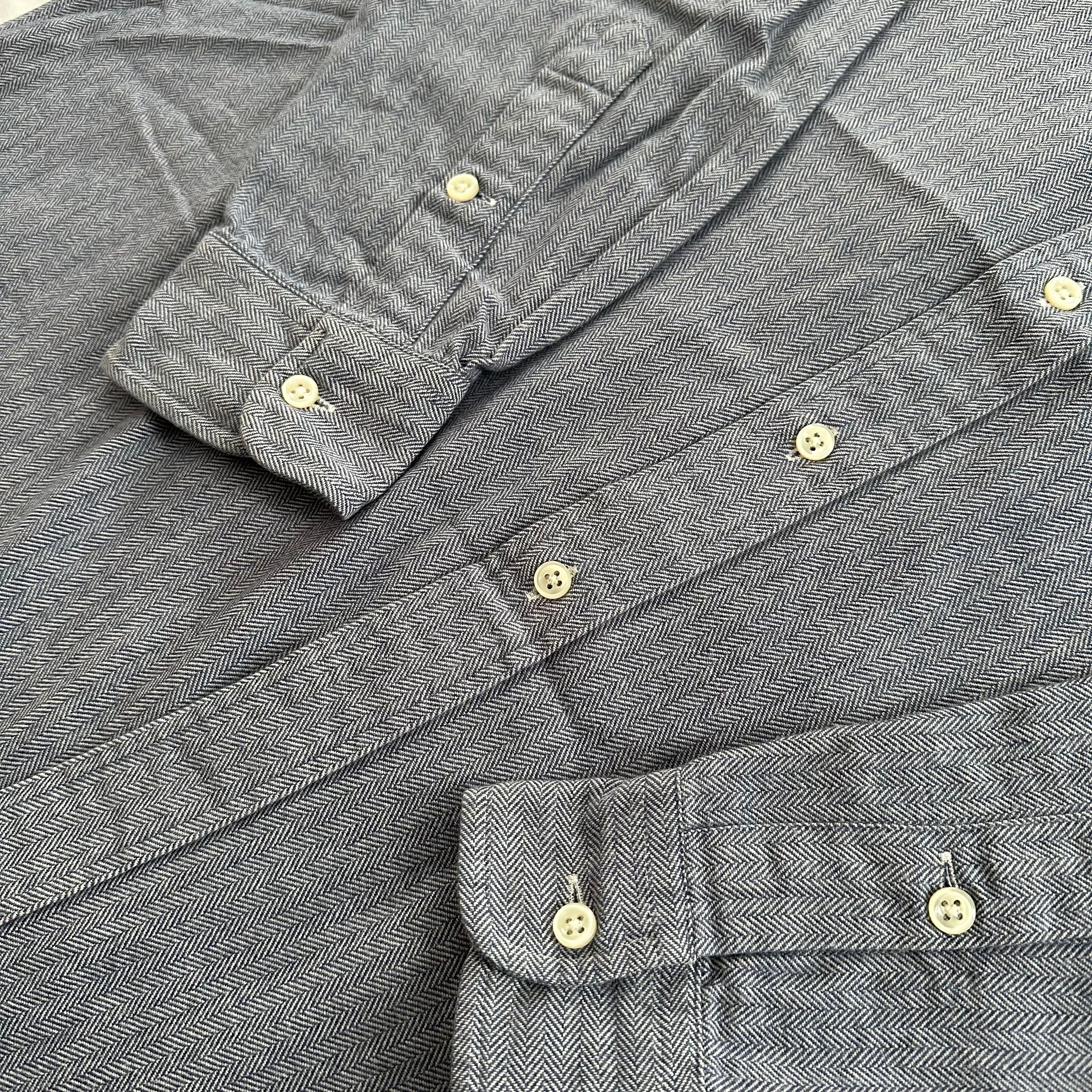 80〜90年代ラルフローレンのブレイクシリーズのボタンダウンシャツ。限定的に生産されていたルーズシルエットが特徴的なブレイク。ブルー/グレーベースのヘリンボーンでワーク味のある渋目な一枚!
