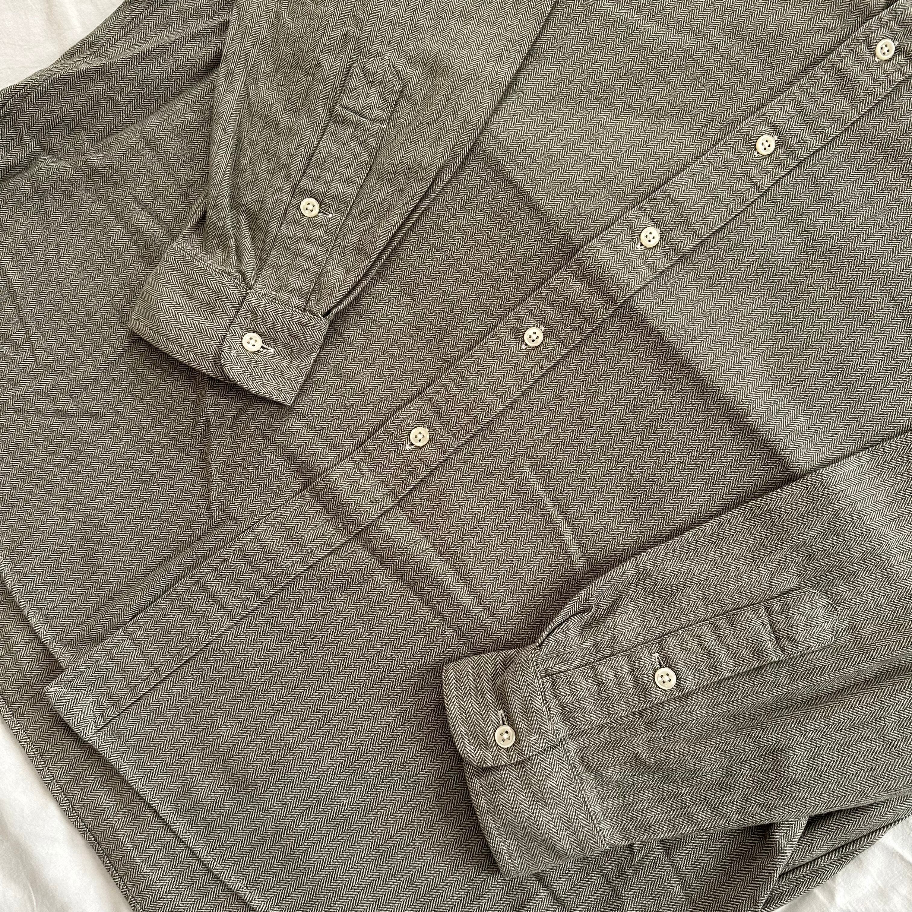 80〜90年代ラルフローレンのブレイクシリーズのボタンダウンシャツ。限定的に生産されていたルーズシルエットが特徴的なブレイク。グリーン/グレーベースのヘリンボーンでワーク味のある渋目な一枚!