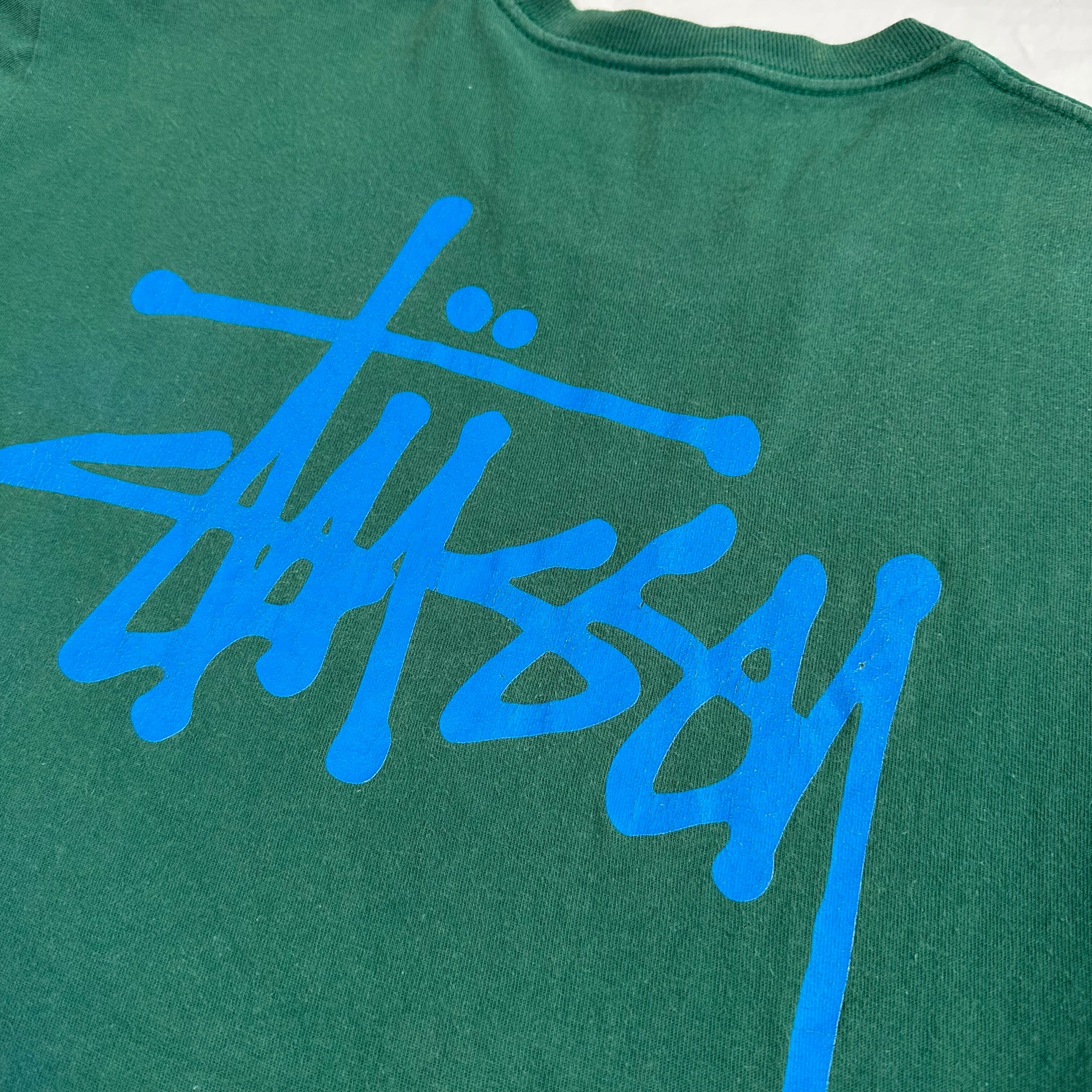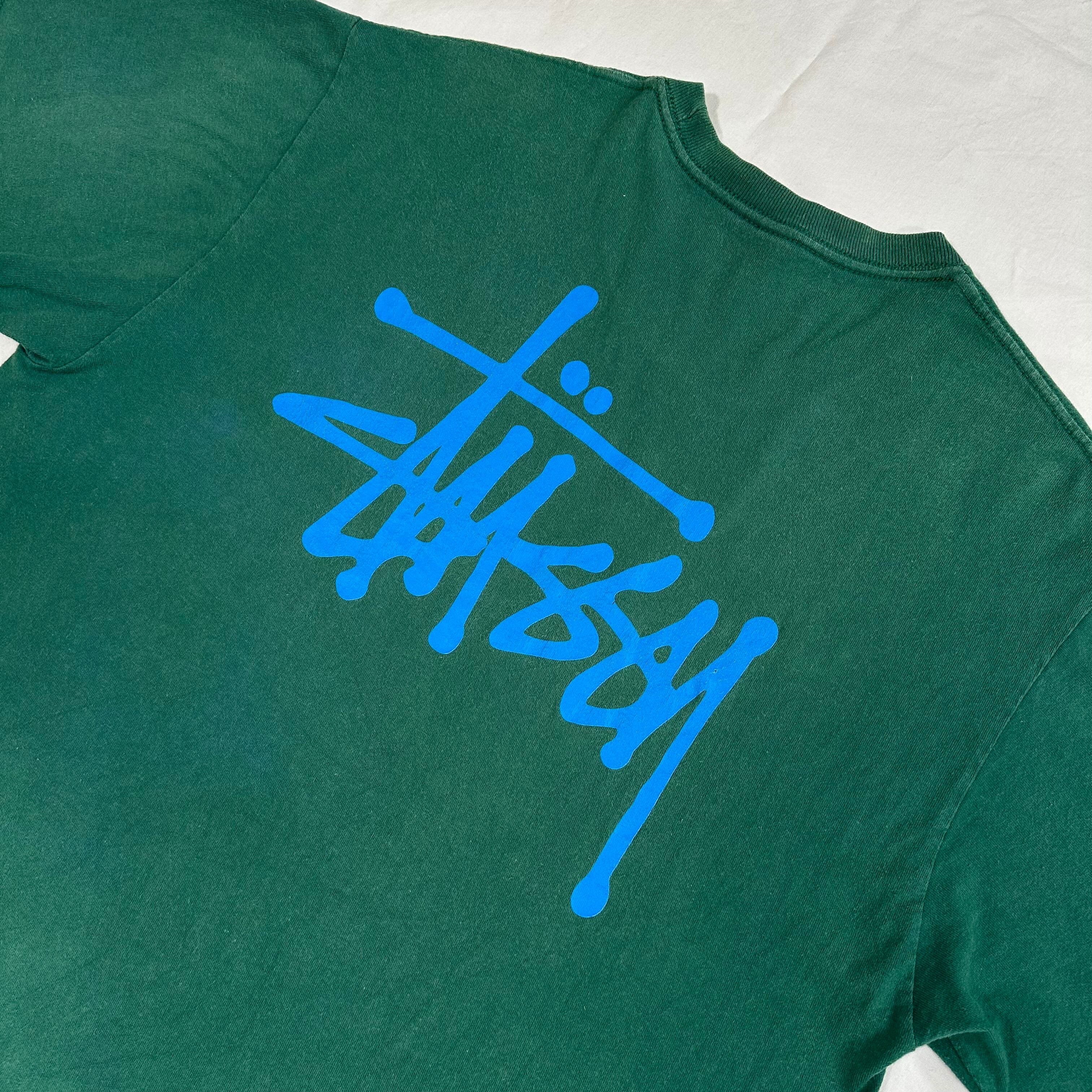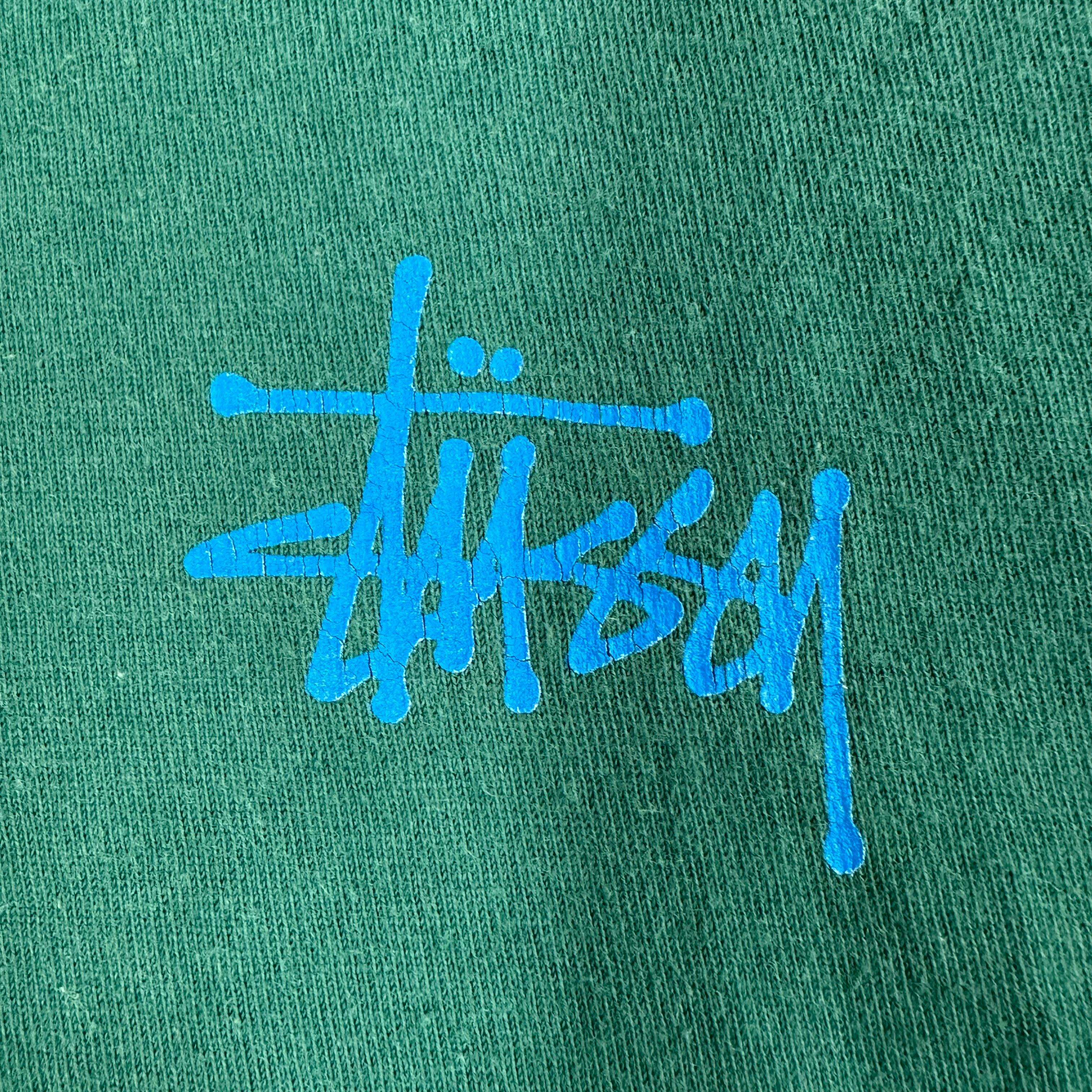 10sステューシー、ベーシックなストックロゴTシャツ。ブランドを象徴するストックロゴのアイテムですが、近年現行では意外と出て来ないデザインにつき、現行・古着共に再注目されているデザインです。カラーも人気の高いグリーン。是非今のうちに!