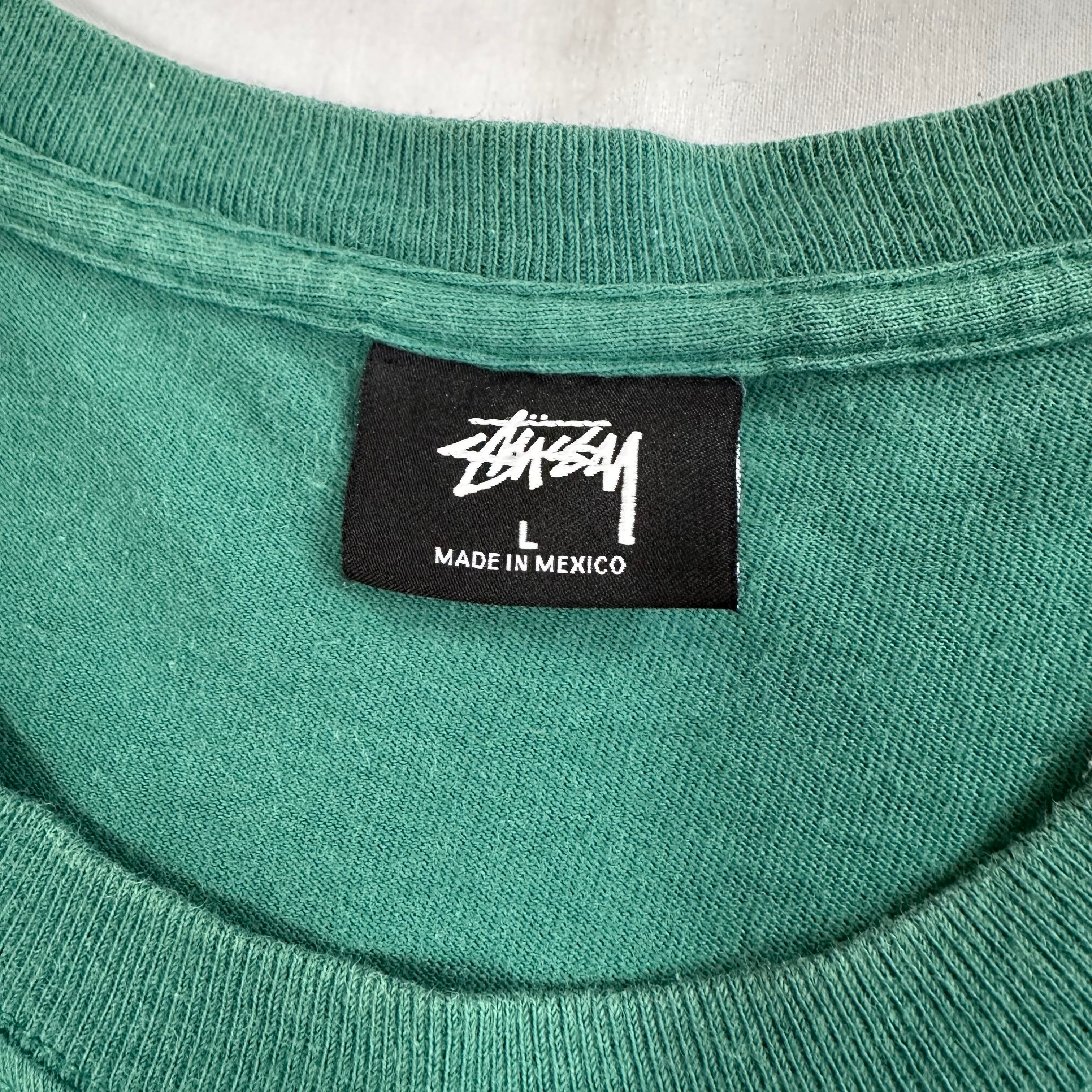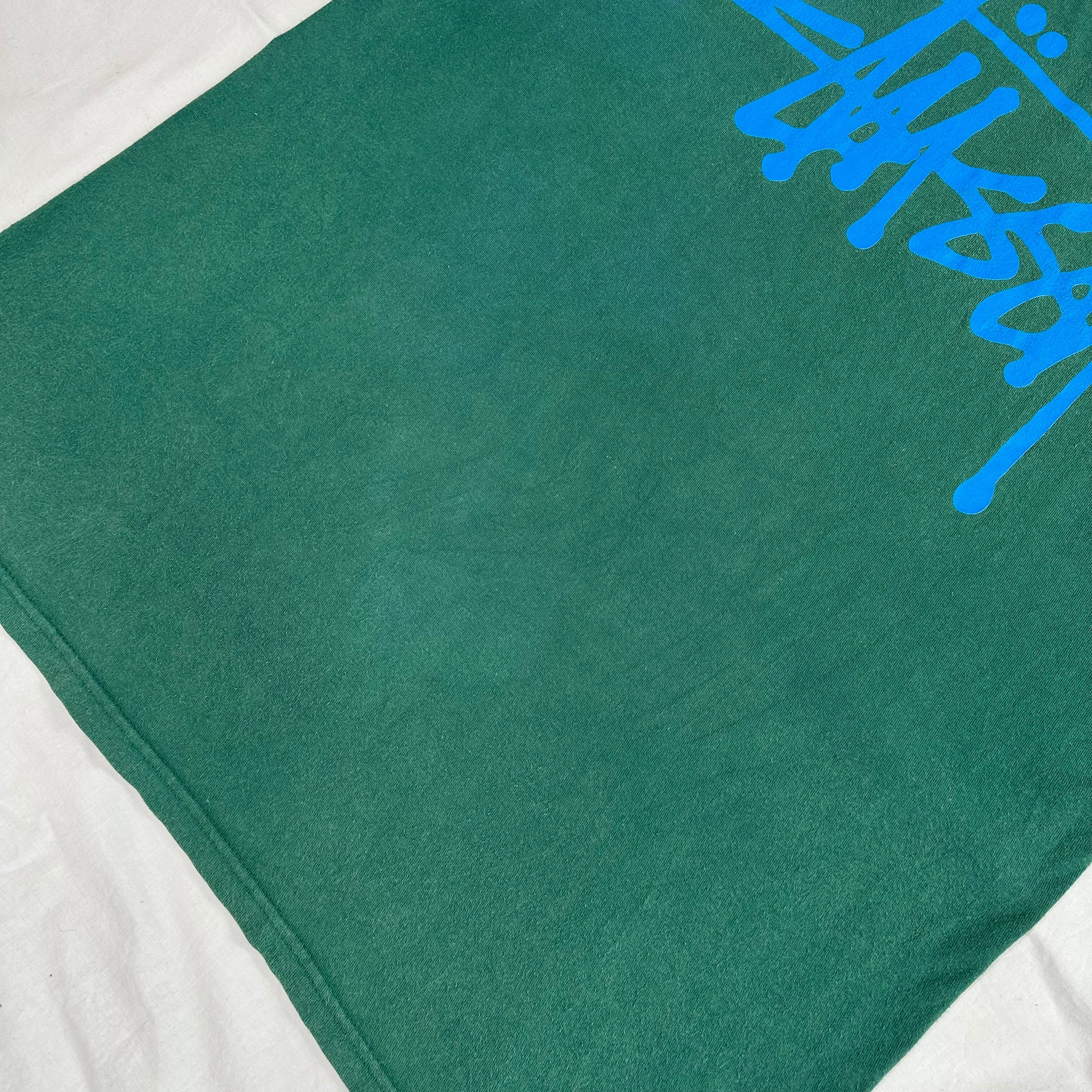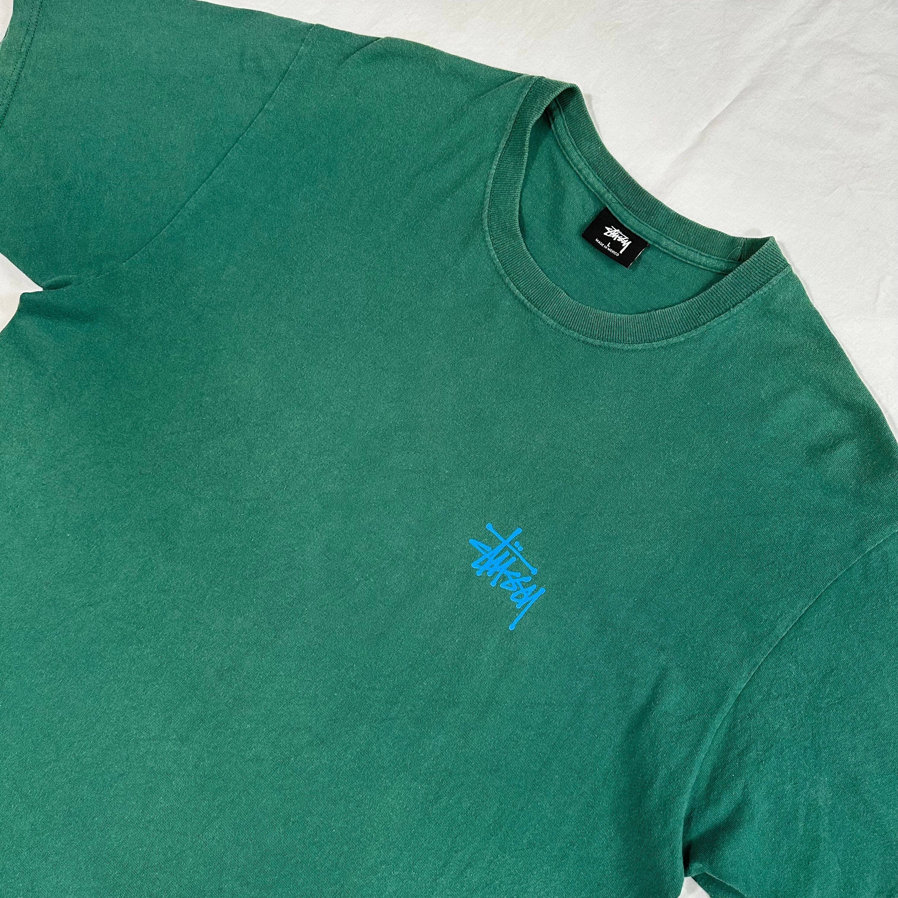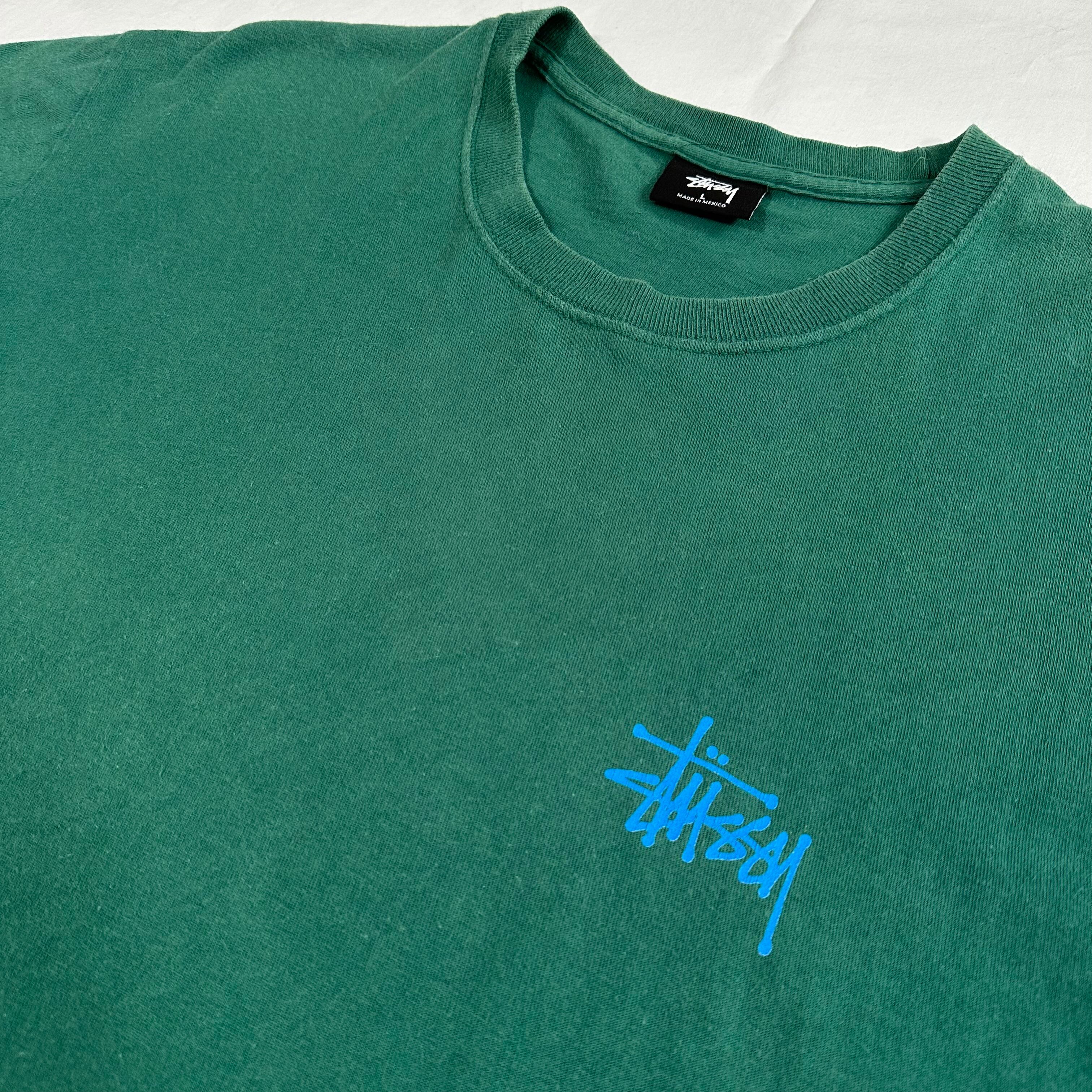 10sステューシー、ベーシックなストックロゴTシャツ。ブランドを象徴するストックロゴのアイテムですが、近年現行では意外と出て来ないデザインにつき、現行・古着共に再注目されているデザインです。カラーも人気の高いグリーン。是非今のうちに!