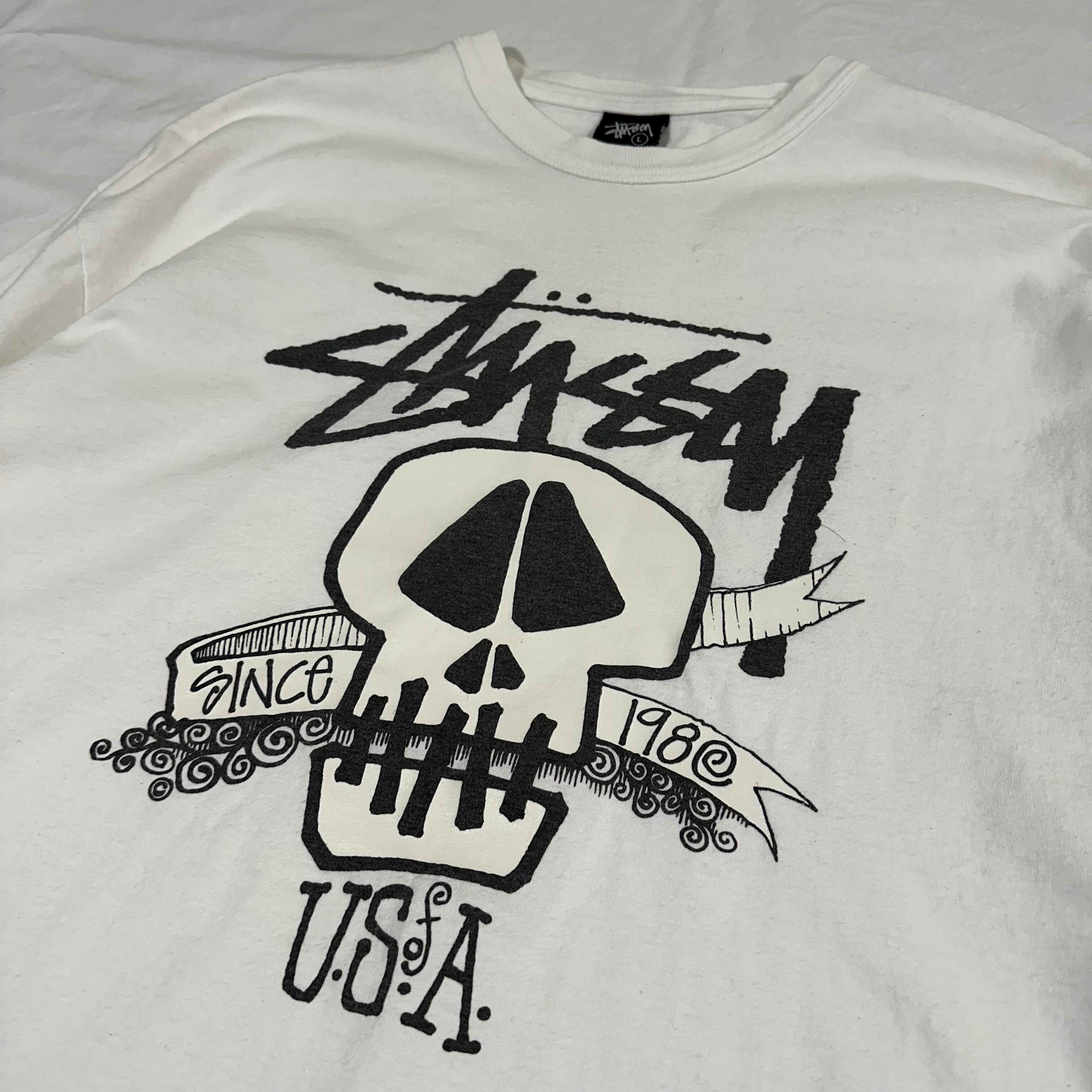 00s OLD STUSSY USA SKULL LONG TEE.WHITE.L
