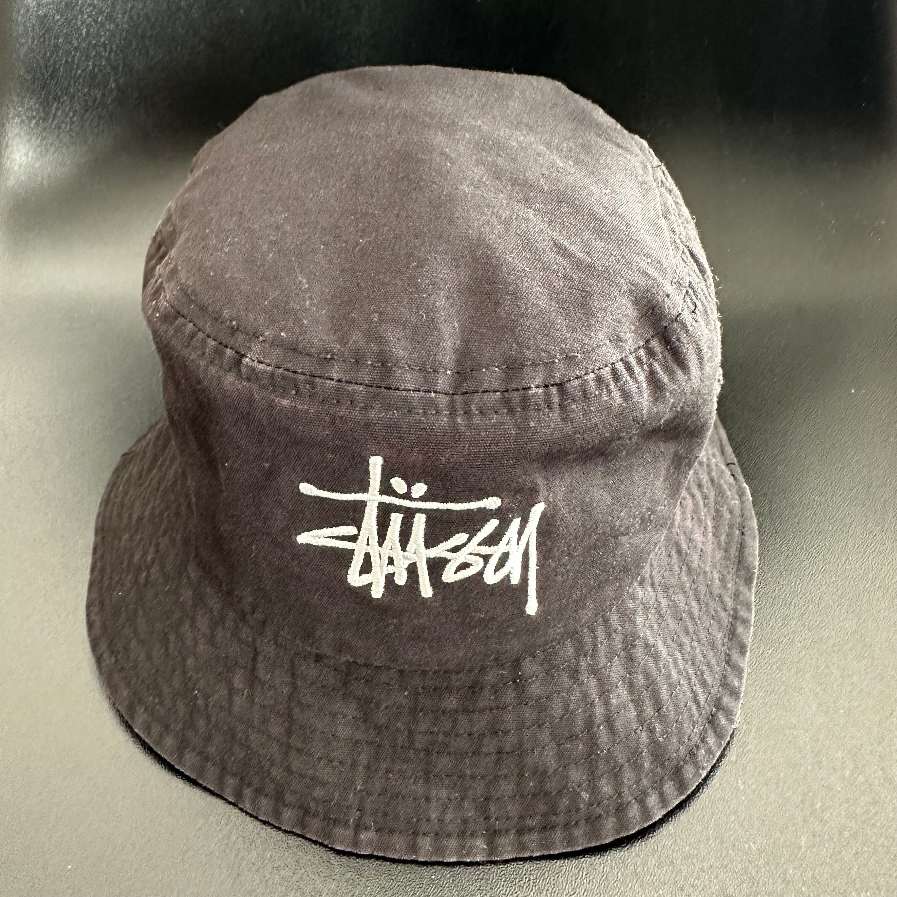 STUSSY BIG STOCK LOGO BUCKET HATS.BLACK. L/XL
