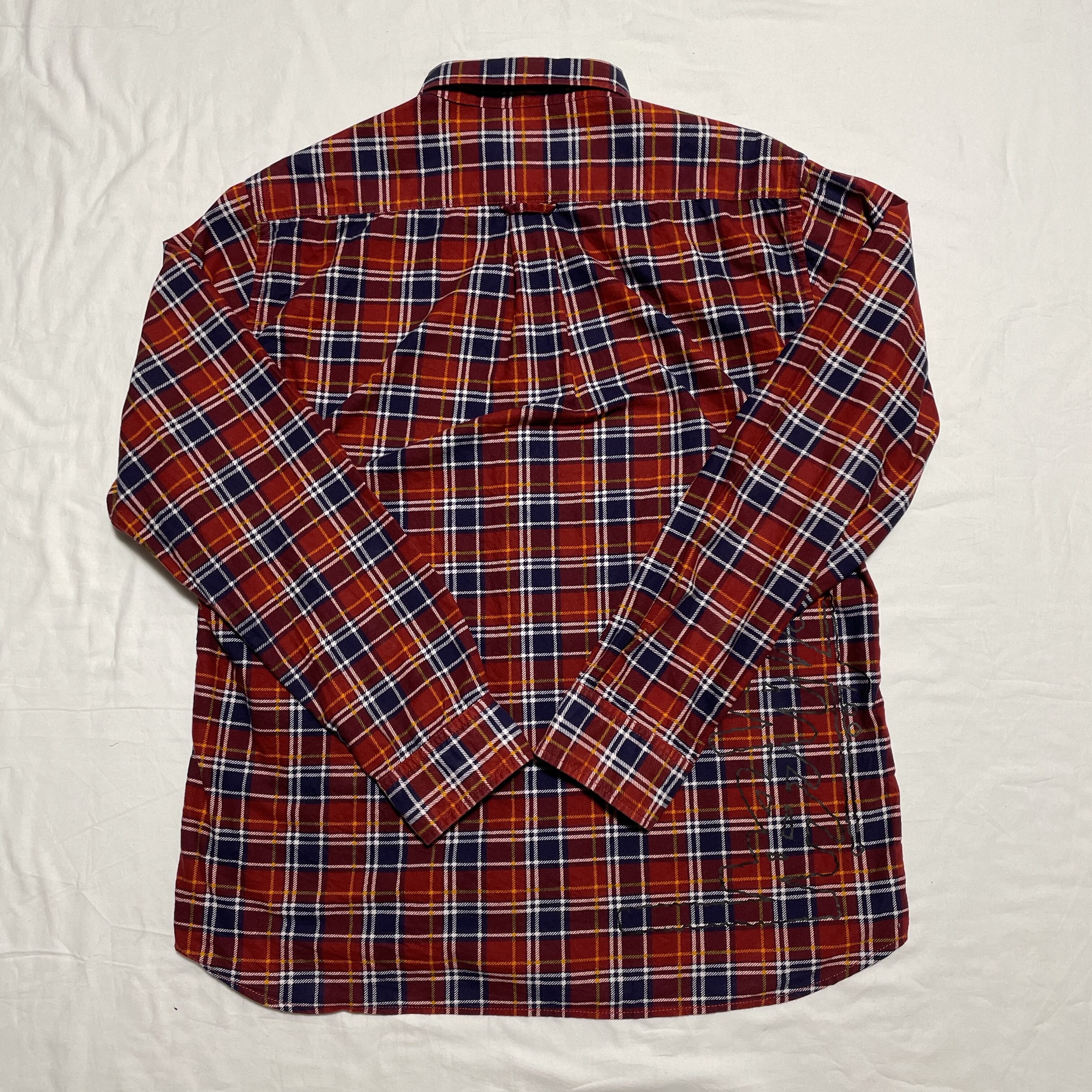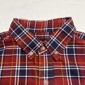 ステューシーのフランネルチェックシャツ。レッド、ネイビーのコンビからなるターンチェック。バックの裾部分にステューシーのビッグロゴが入ります。作りもしっかりとした1枚でもインナーでも汎用性の高い1枚です。