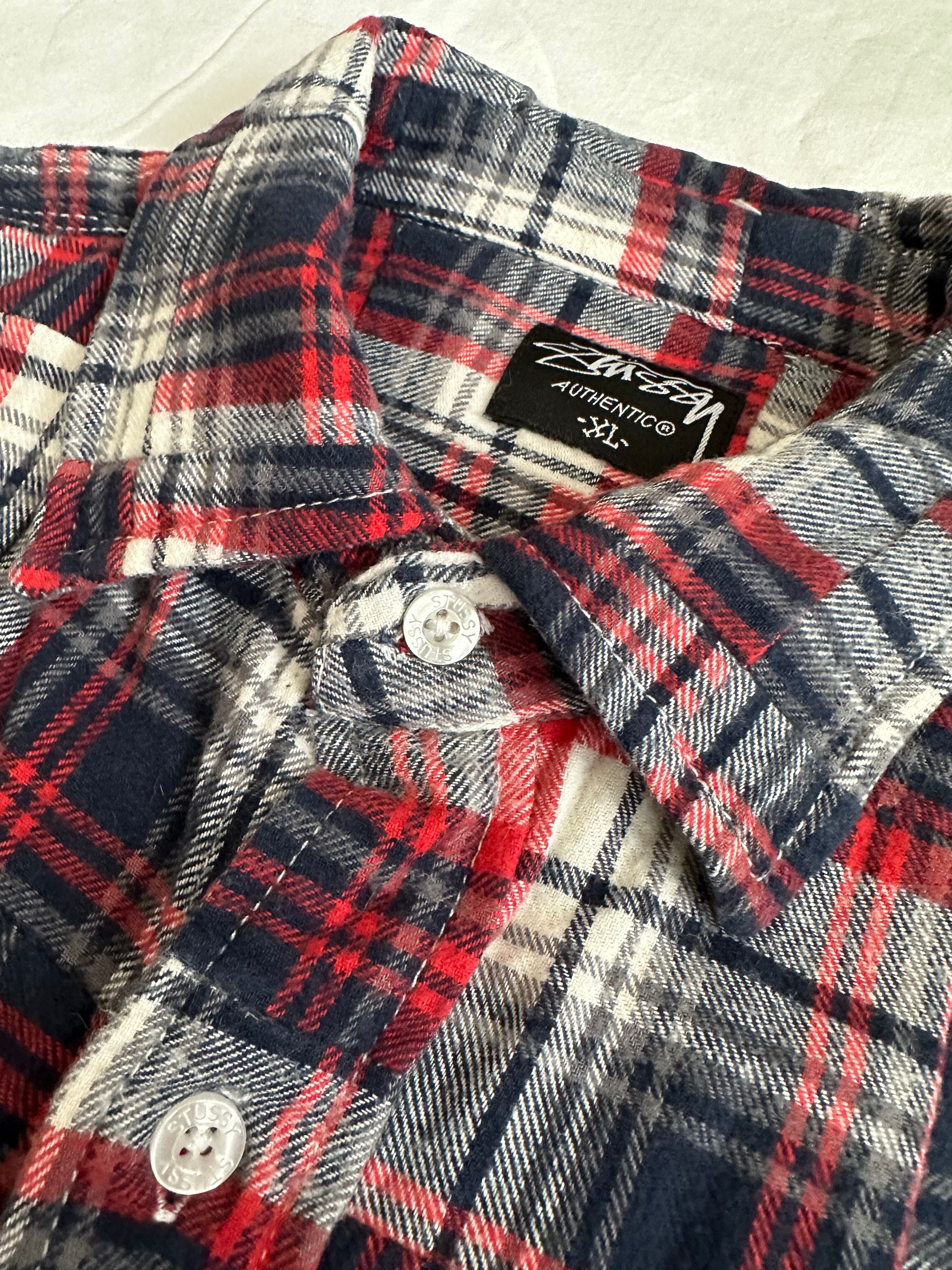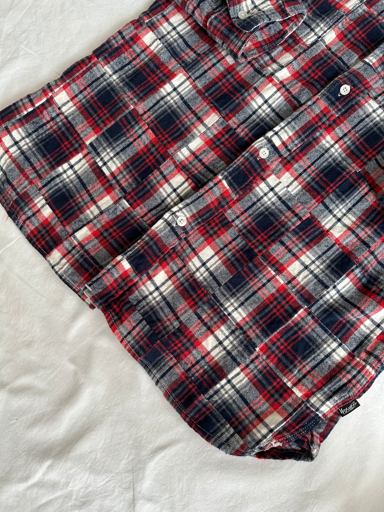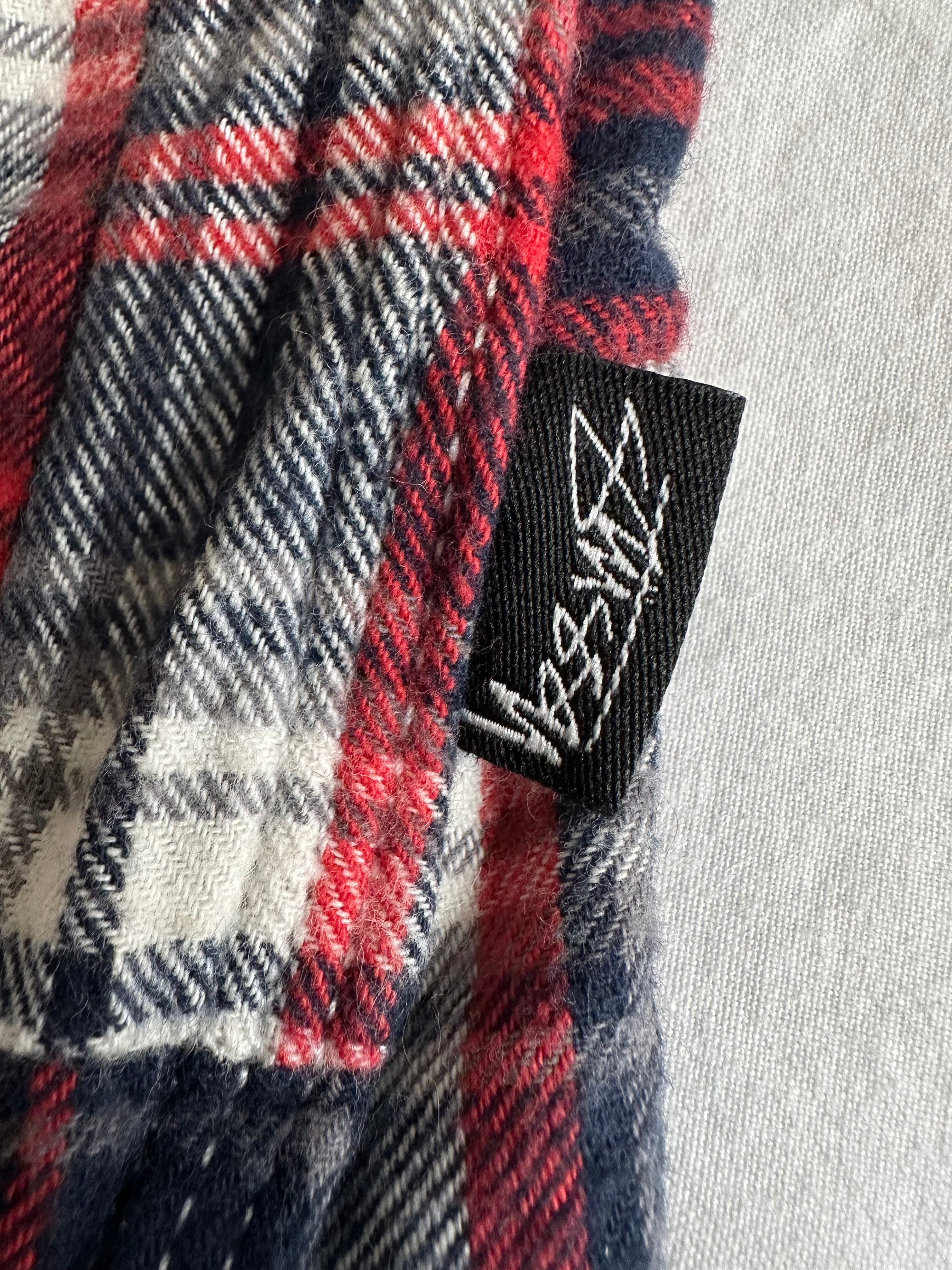 00s STUSSY flannel patchwork shorts .NAVY/RED.XL