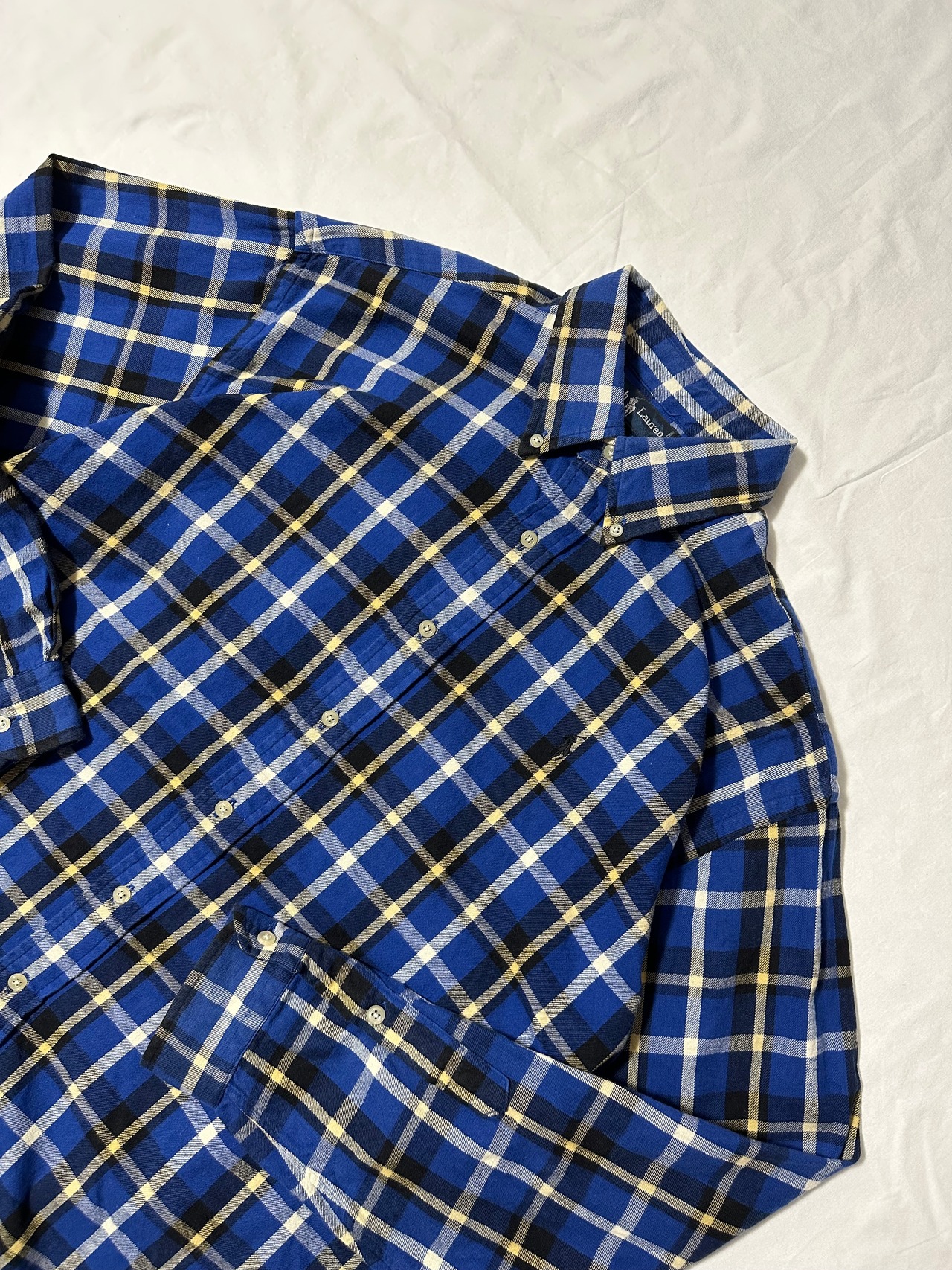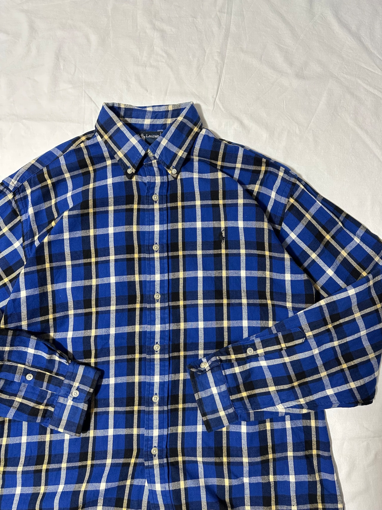 90s Ralph Lauren BLAIRE ラルフローレン 長袖チェックボタンダウンシャツ.BLUE.L