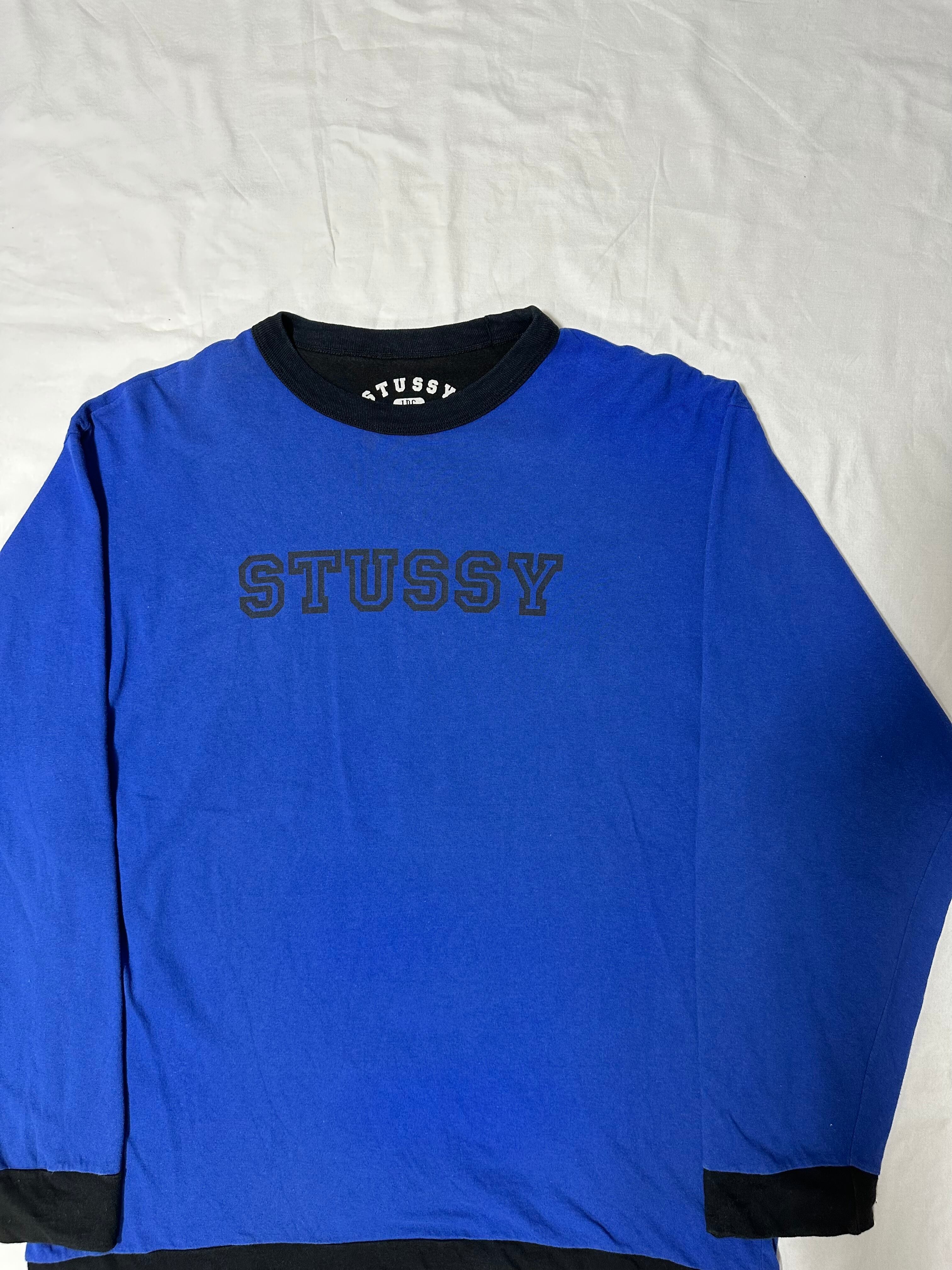 ステューシー、ダブルフェイス(リバーシブル)の長袖カットソー。表地ブルー、裏地ブラック。