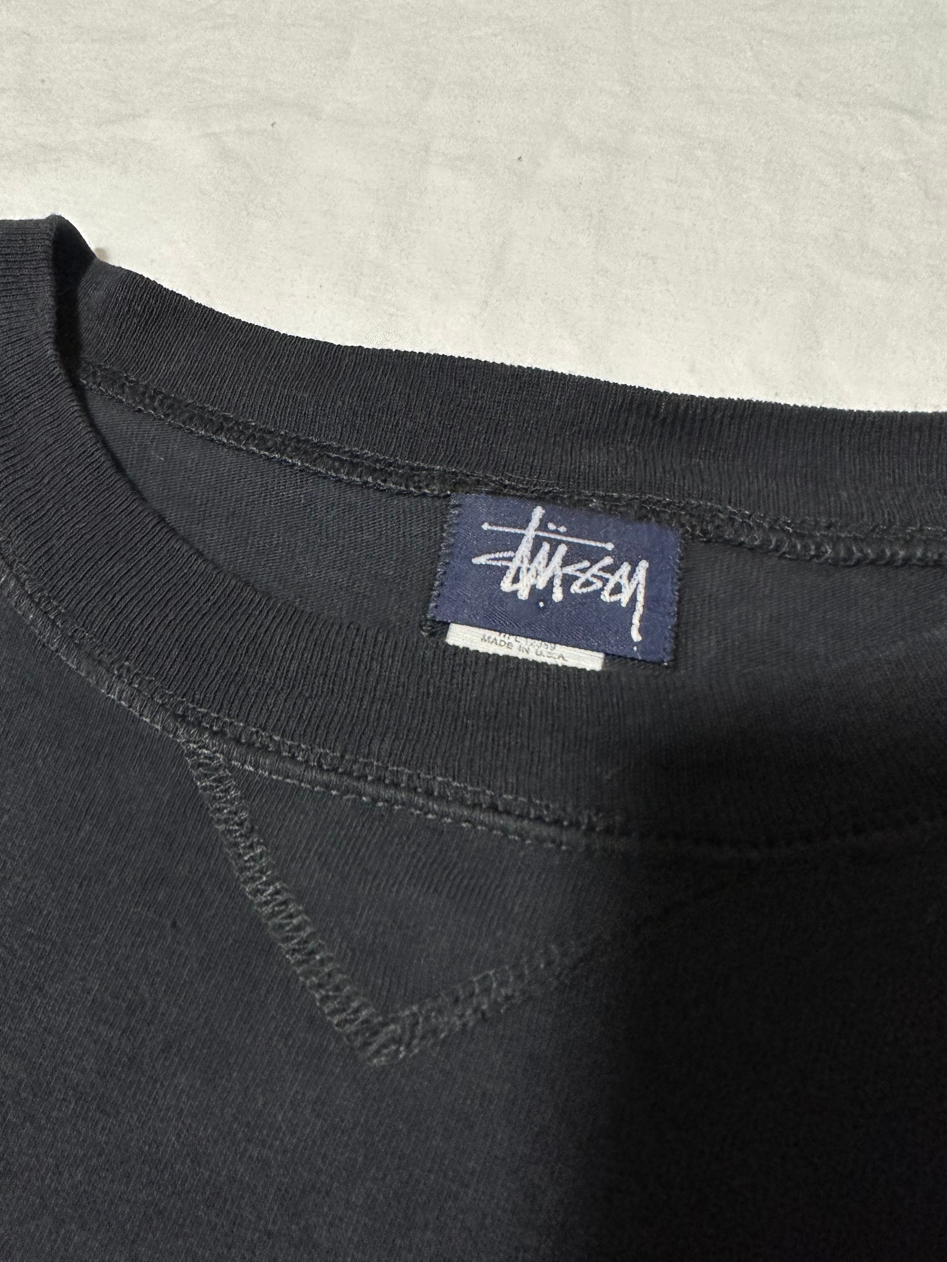 【MADE IN USA】00s STUSSY flocky print logo Tee.BLACK.L