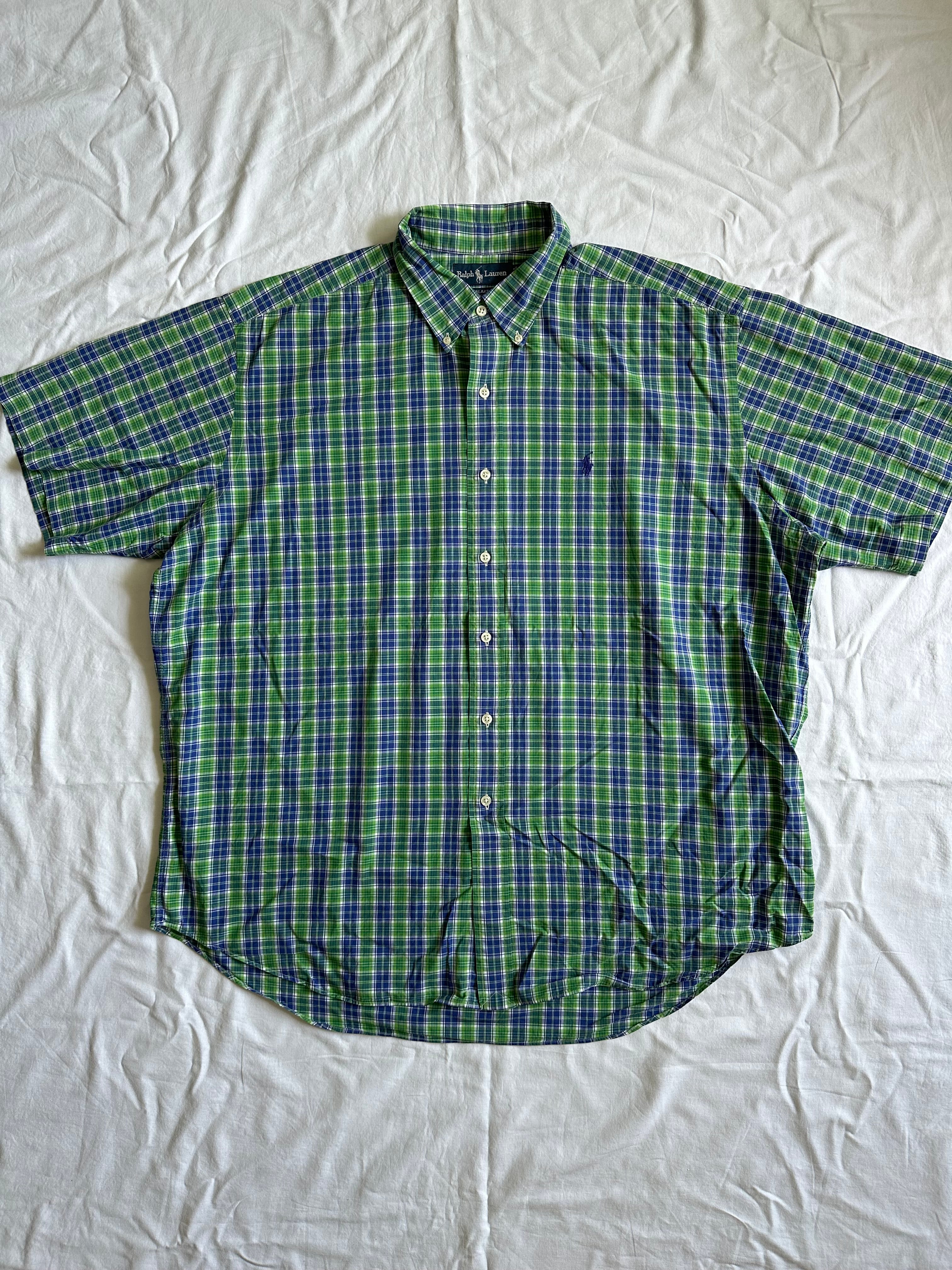 80〜90年代ラルフローレンのブレイクシリーズのボタンダウン半袖シャツ。限定的に生産されていたルーズシルエットが特徴的なブレイク。グリーン/ネイビーのベースカラーがカジュアルなチェック柄。