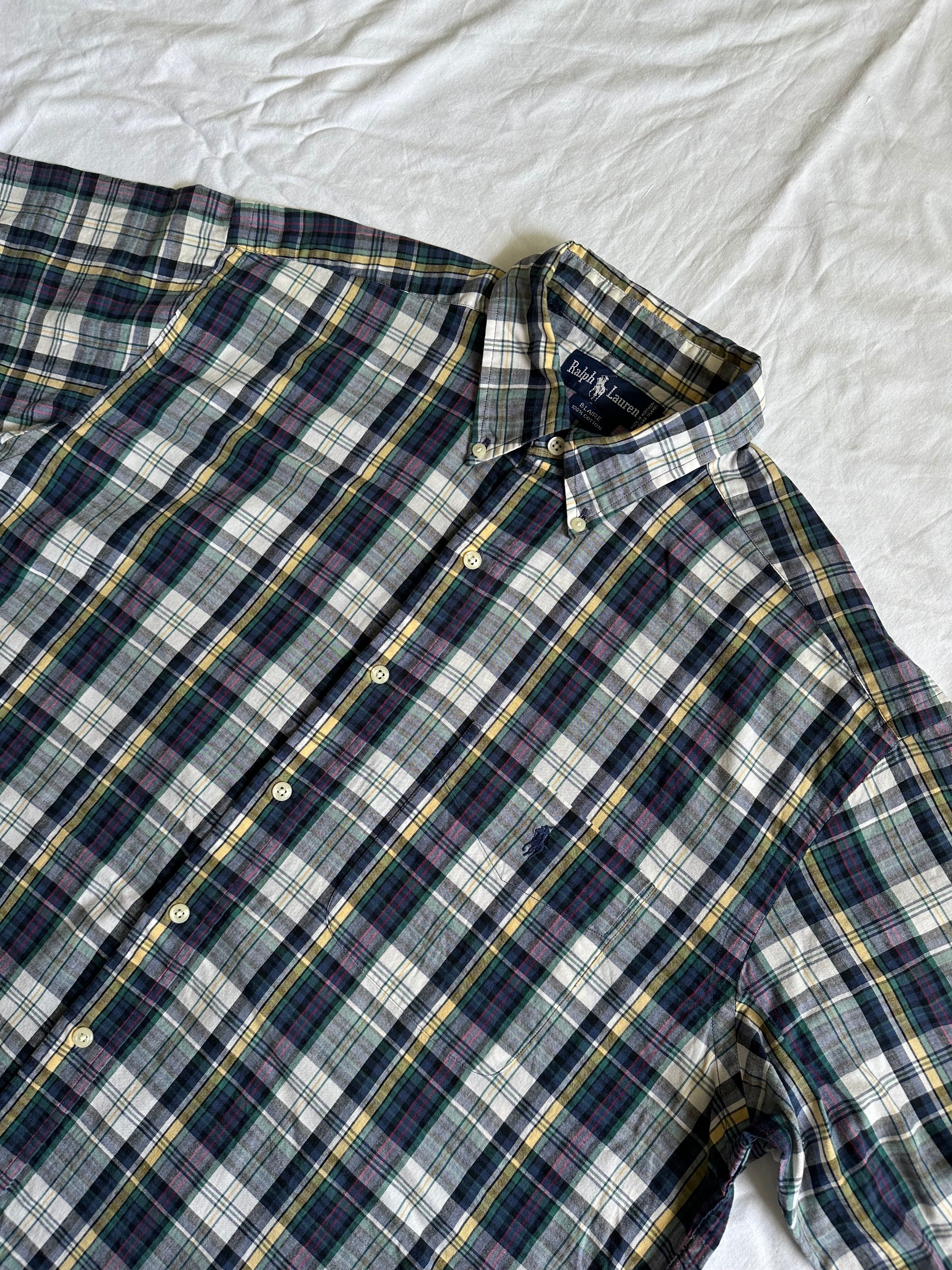 90s Ralph Lauren BLAIRE ラルフローレン 半袖チェックボタンダウンシャツ. L
