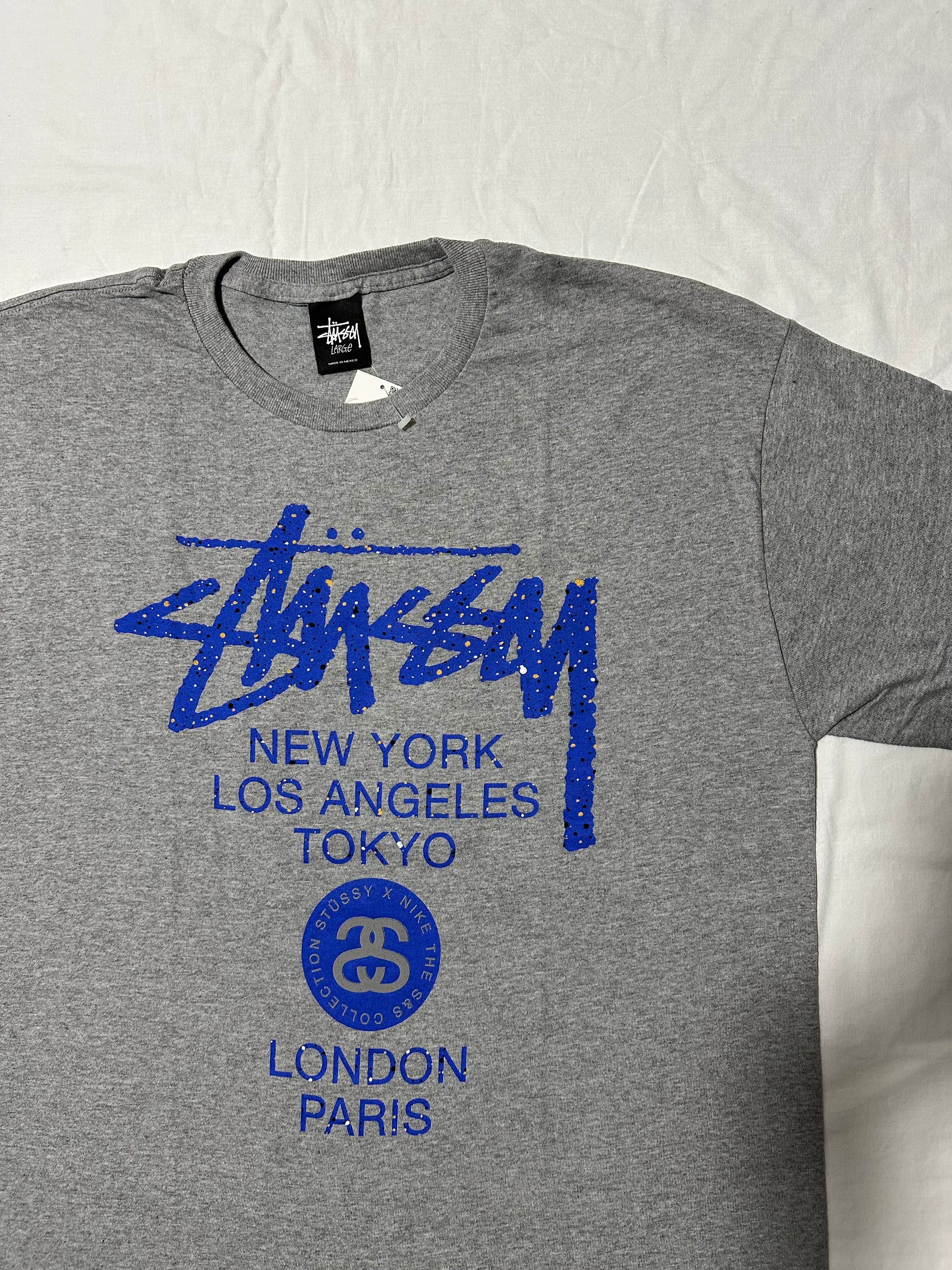 ステューシー定番人気のワールドツアーグラフィックにNIKEとのコラボSSロゴを配置した希少な新品未使用!