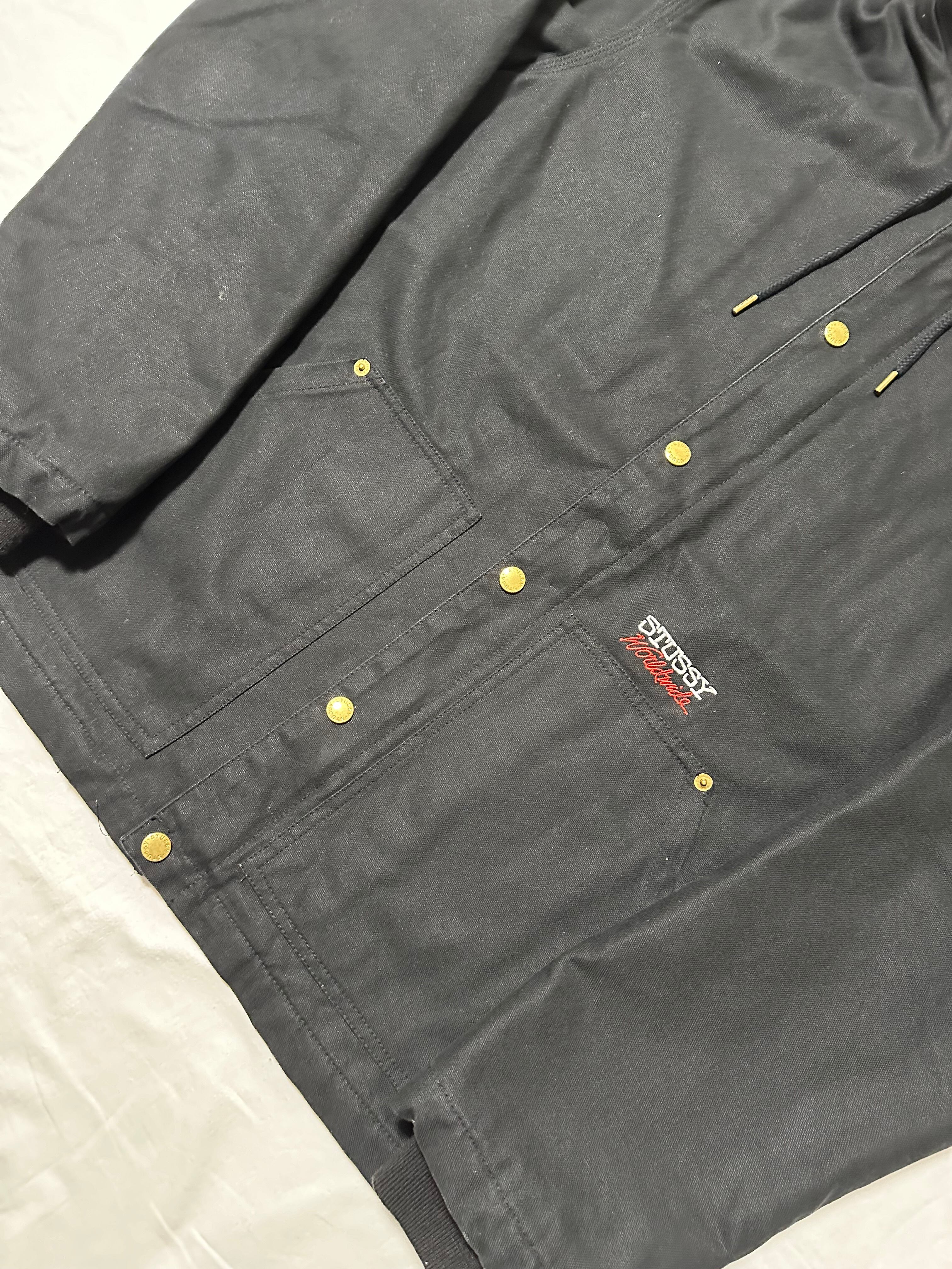 ステューシーロゴを刺繍で施し、某ワークウェアの様なタフでしっかりとした素材のアウターウェアです。