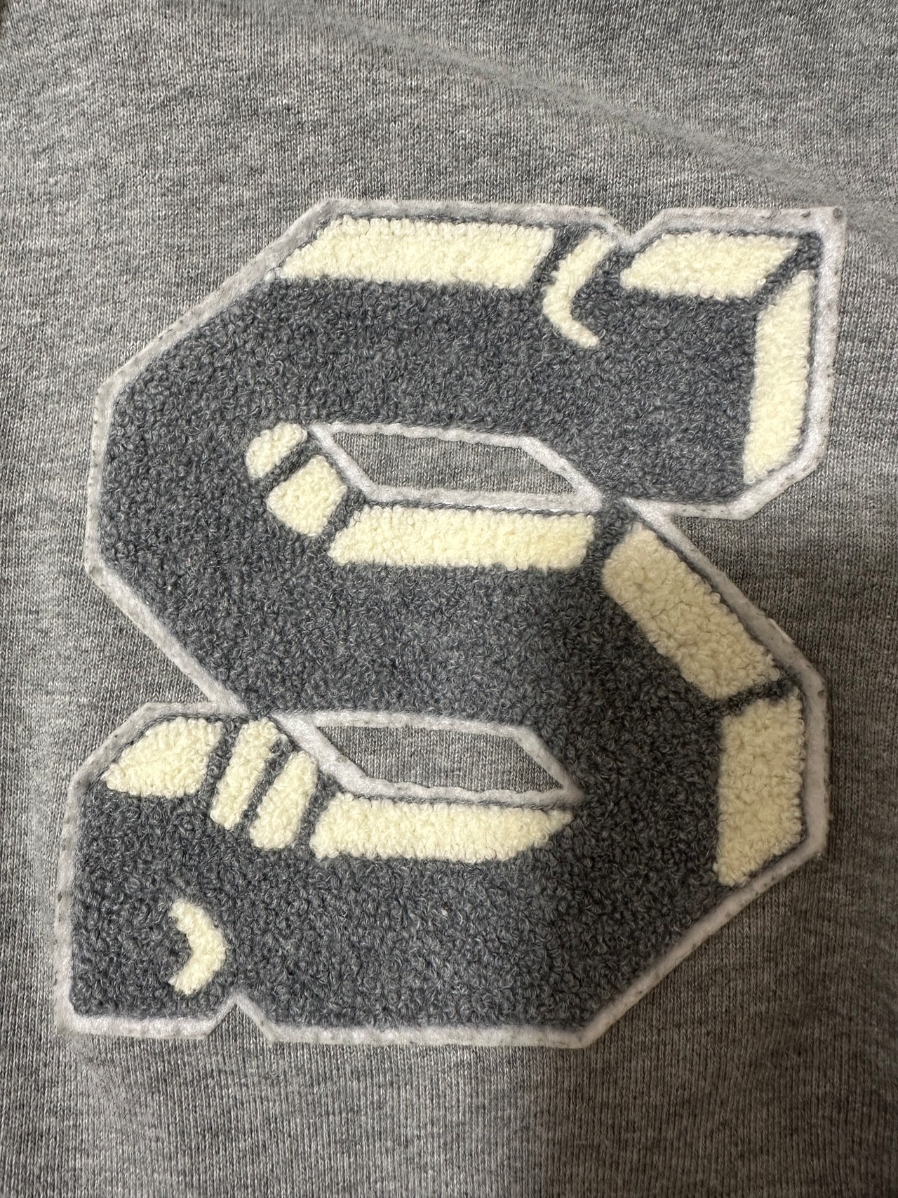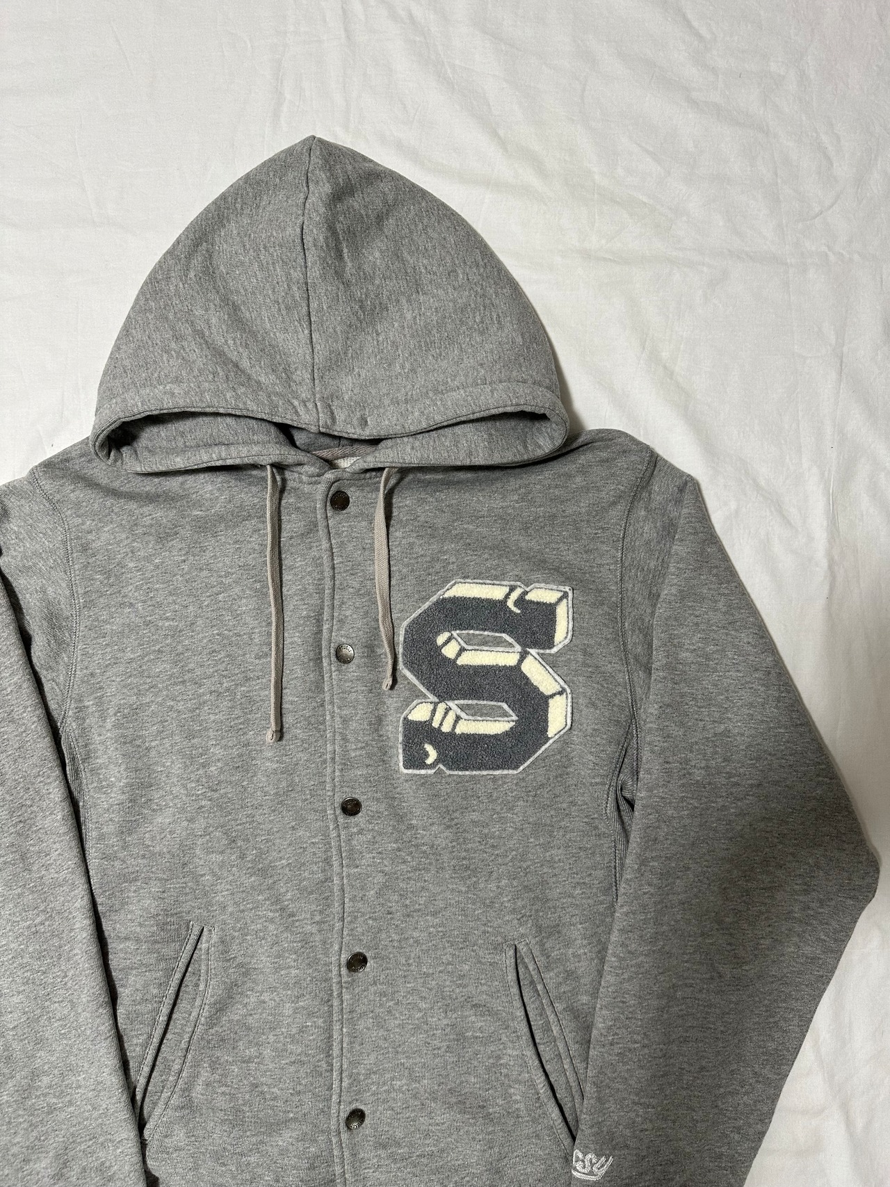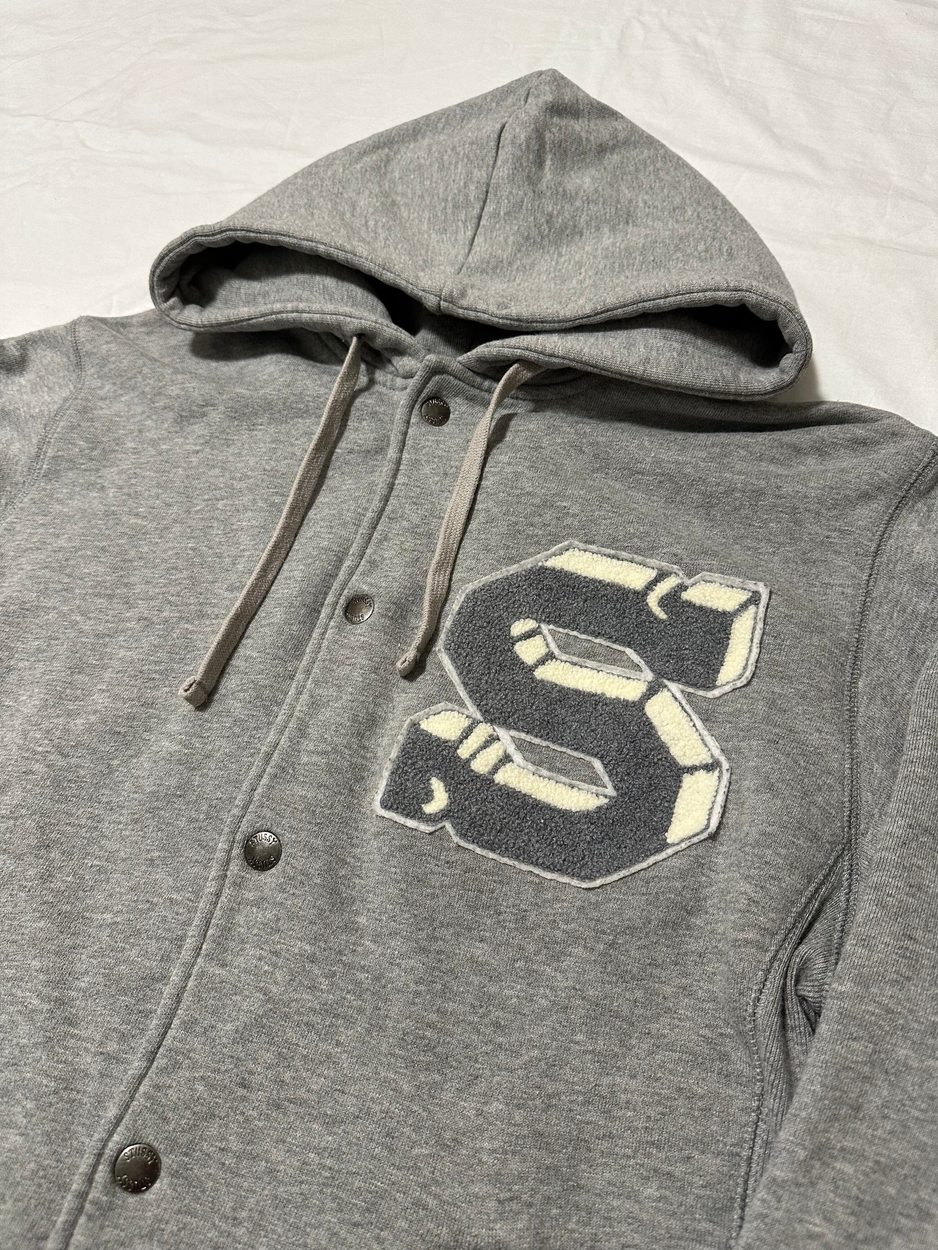 胸元にSロゴのワッペン、袖口にStussy刺繍、脇下リブ、フロントはスナップボタン仕様。スウェットスタジャンの様なパーカディテールで秋口から春先まで着用出来る万能な1着!