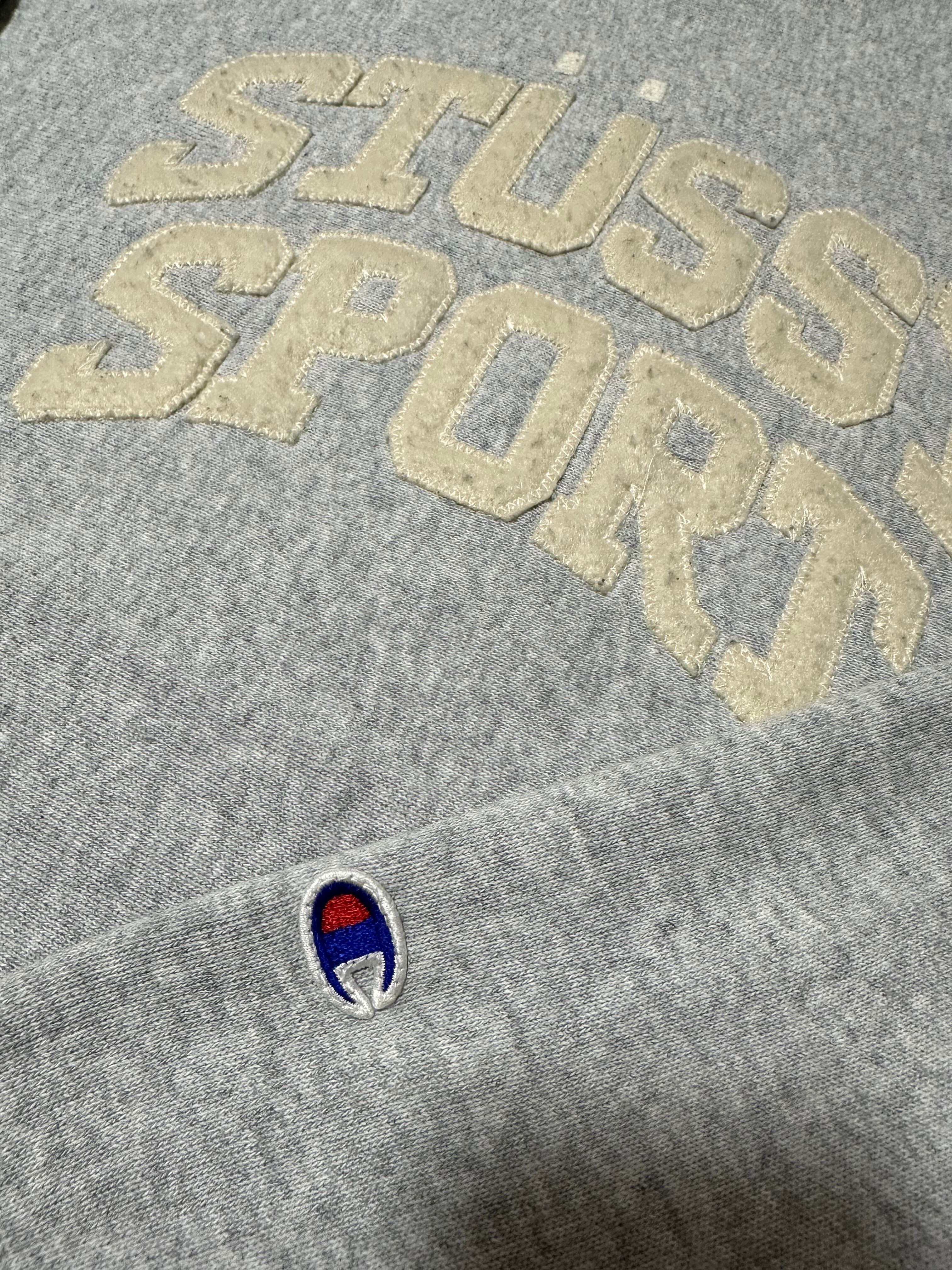 ステューシー、チャンピオンのコラボリバースウィーブスウェット。フロントにステューシースポーツのワッペンを配置したold stussyでも見られるベーシックなデザインのスウェット。他と差をつけられるリバースウィーブ!