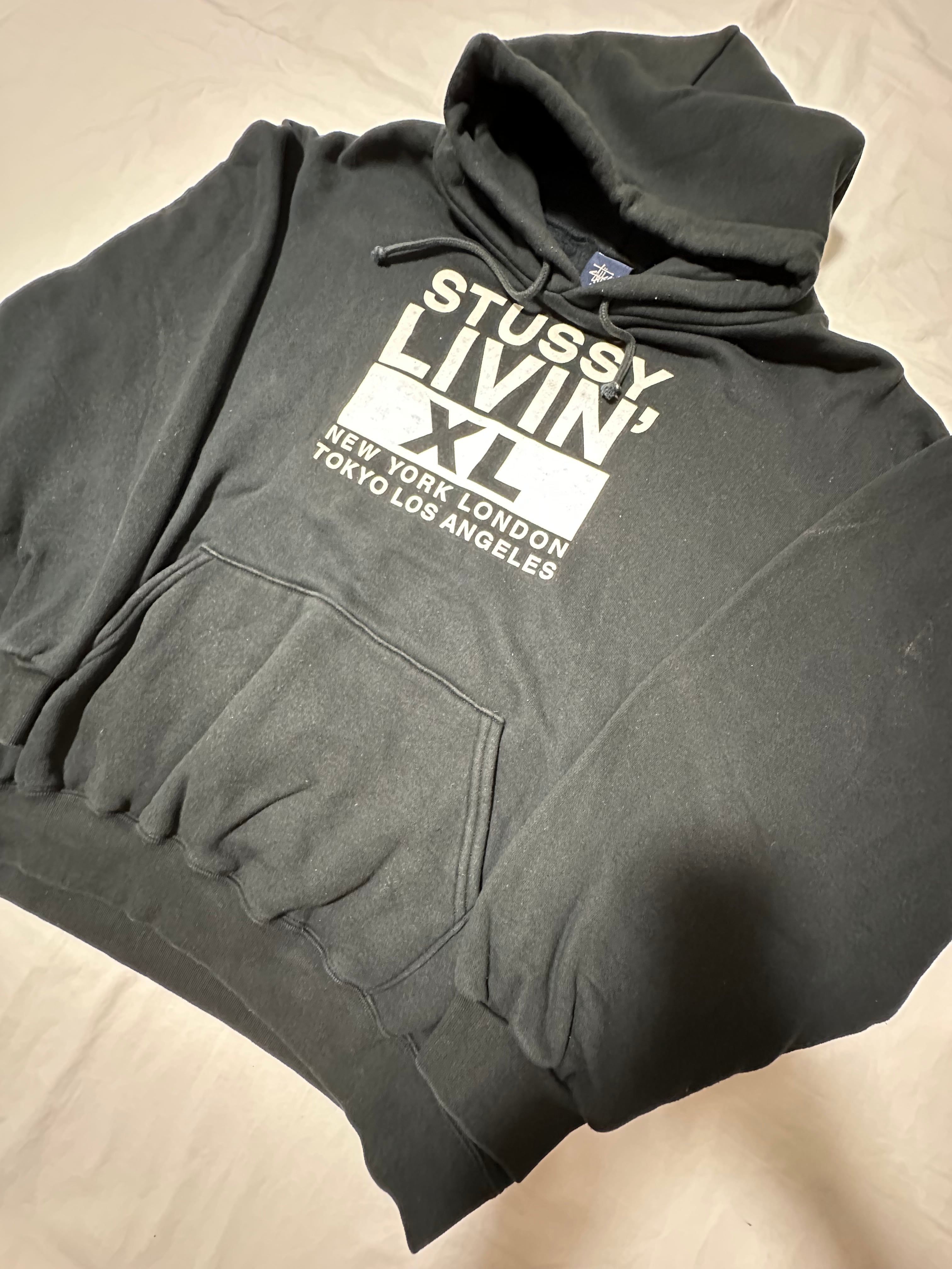 90後半〜00s初期頃のステューシー、スウェットフーディ。ブラック。Lサイズ。