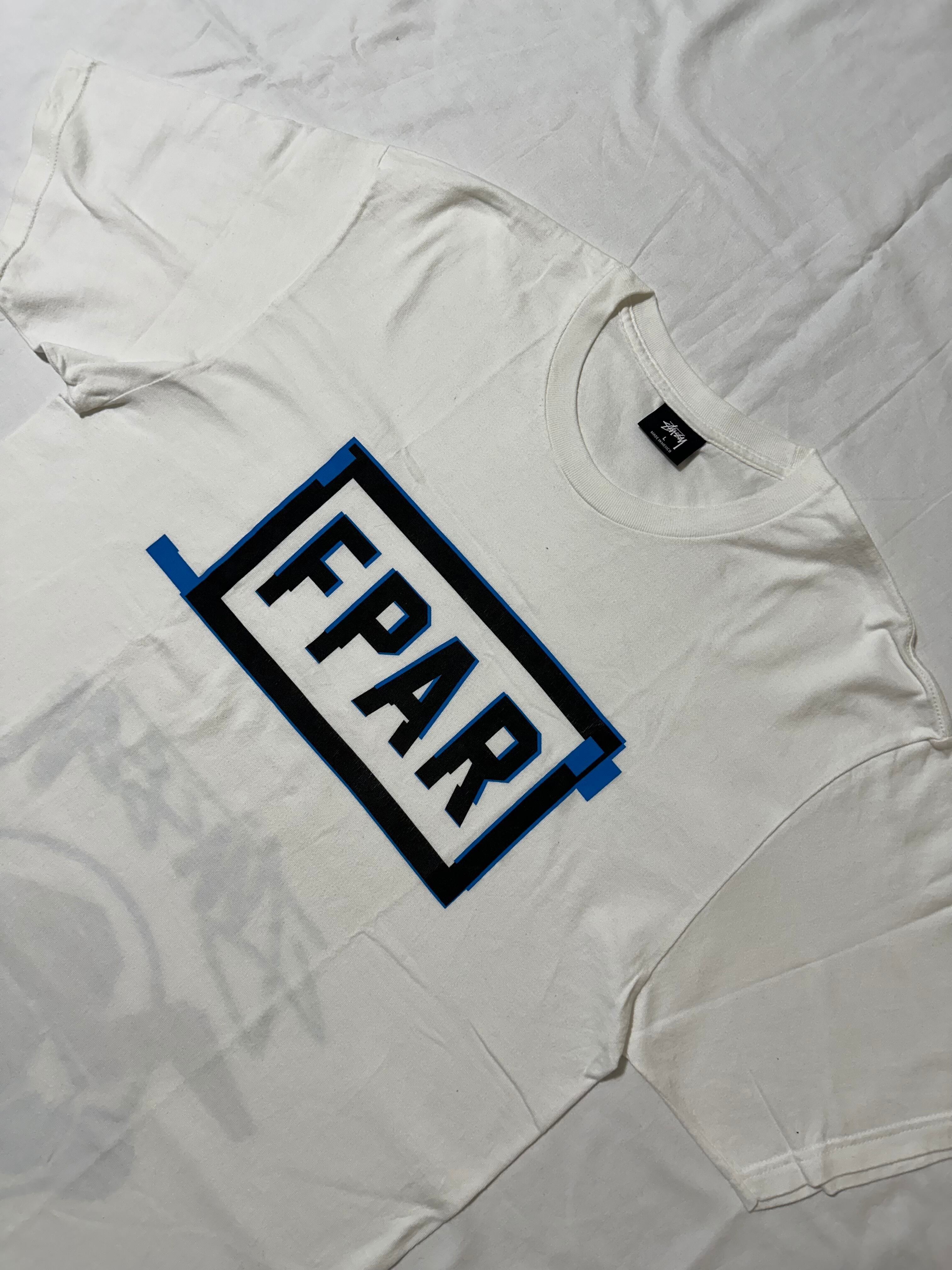 ステューシー x FPAR(フォーティーパーセントアゲインストライツ)のコラボTシャツ。WTAPSの西山徹氏による40%とステューシーのスケートマンのグラフィックを用いたスペシャルな一枚。