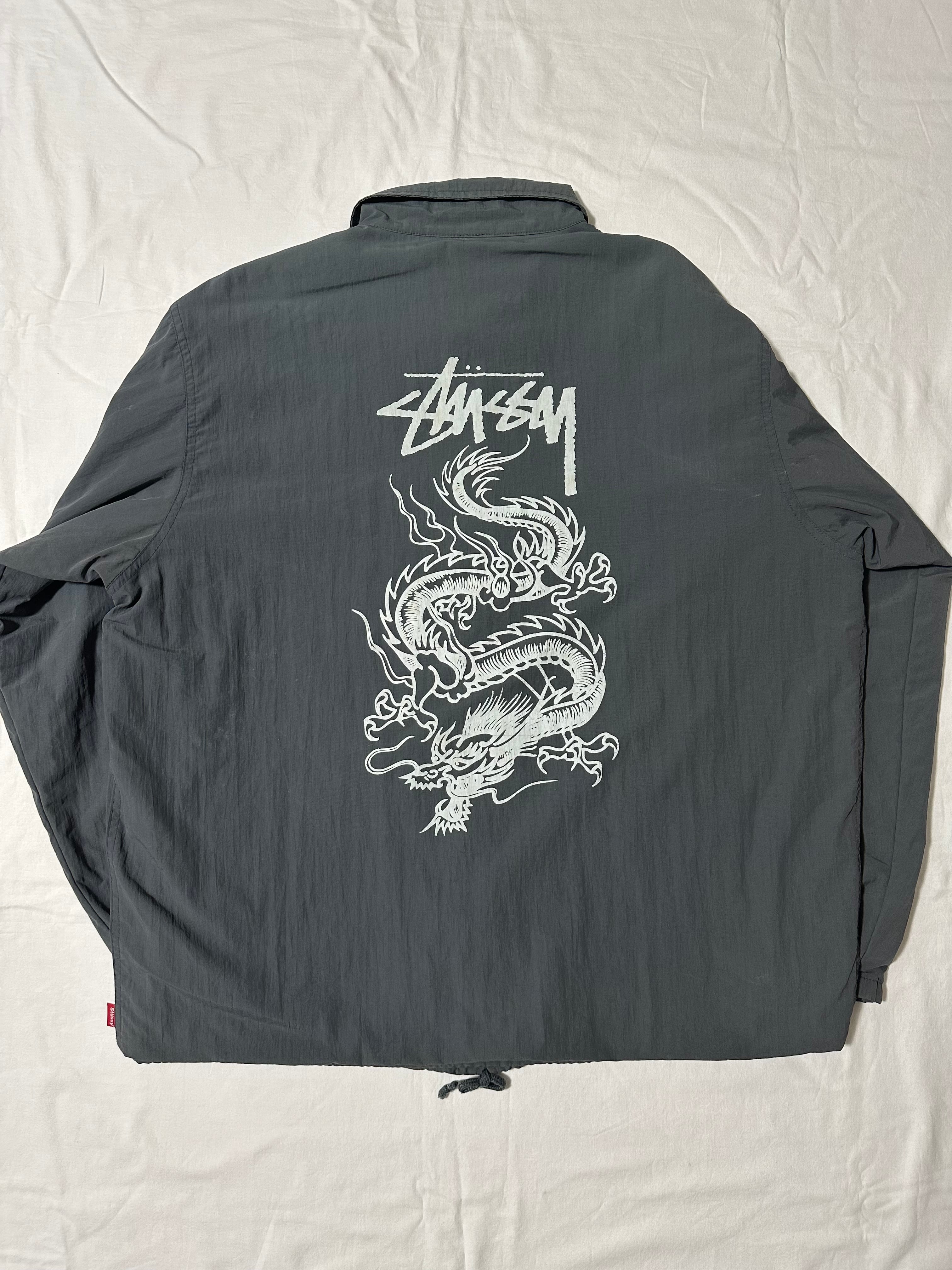 2000年代初期、00sステューシーのドラゴングラフィック、ナイロンジャケット。チャコールグレー。